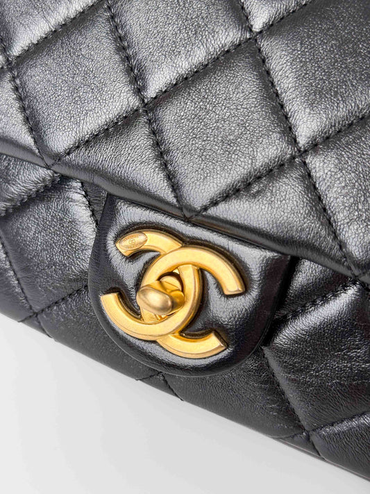 (A117) Chanel Black Calfskin Medium Single Flap, Gold Hardware