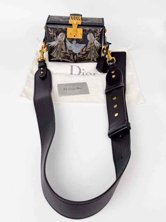 (A121) Dior Black Calf Leather DiorAddict Lockbox Bag, Antique Gold Hardware