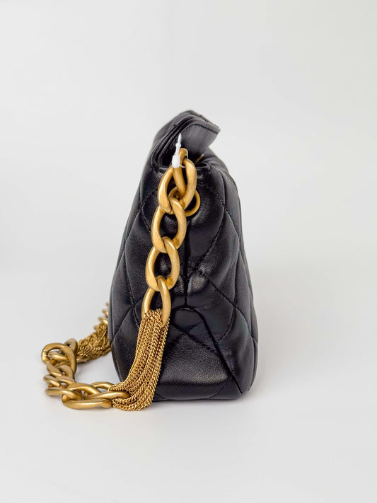 (A116) Chanel Black Calfskin Small Size Hobo, Antique Gold Hardware