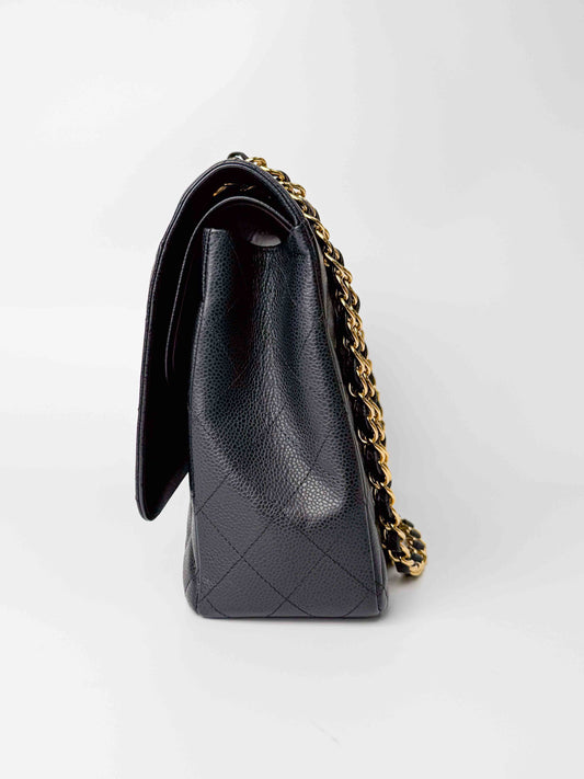 (A124) Chanel Black Caviar Maxi Double Flap, Gold Hardware