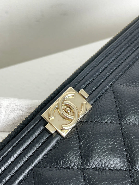 (A24) Chanel Black Caviar LeBoy O Pouch Champagne Gold Hardware