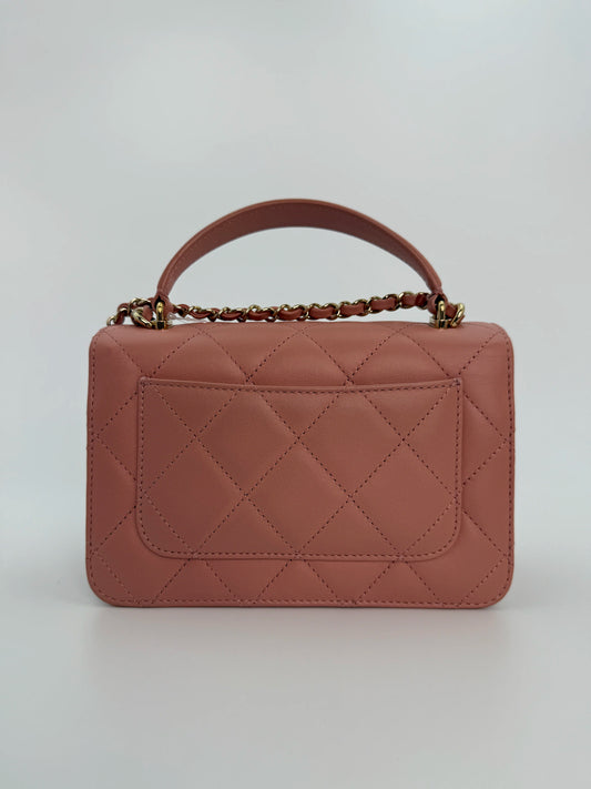 (AJ8) Chanel Pink Calf Leather Quilted Flap Bag, Champagne Gold Hardware
