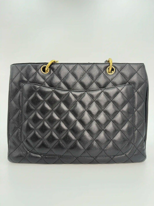 (AJ43) Chanel Black Caviar GST, Gold Hardware