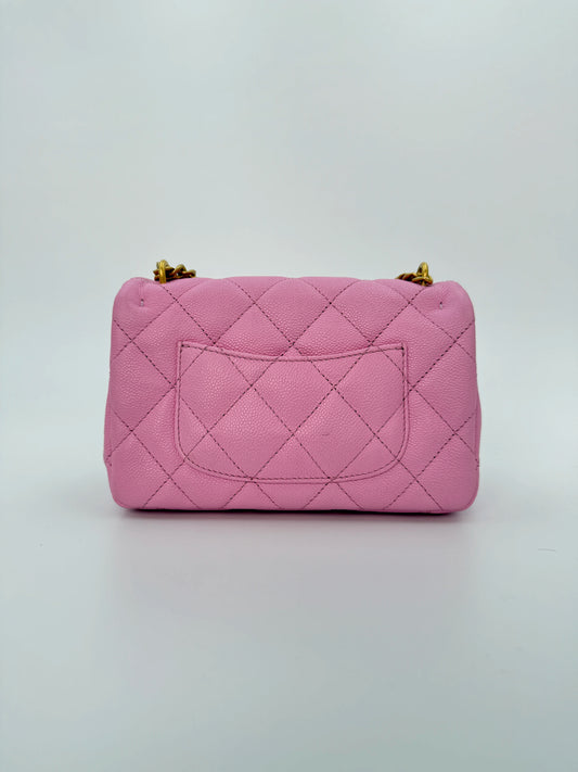 (AJ39) Chanel 23P Pink Caviar Sweetheart Crush Square Flap Bag, Antique Gold Hardware