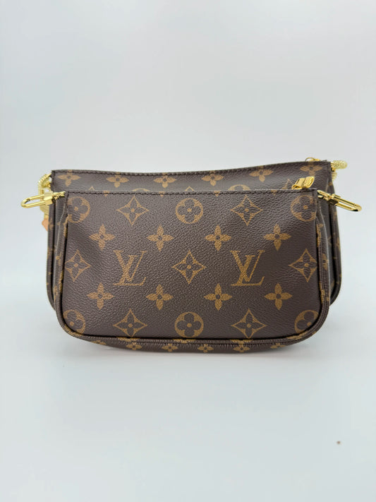 (AJ48) Louis Vuitton Monogram Multi Pochette, Gold Hardware