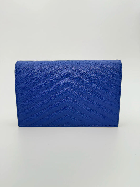 (AJ27) YSL Blue Caviar Cassandre Wallet on Chain, Gold Hardware