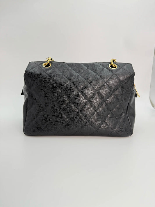 (AJ31) Chanel Black Caviar PTT Tote Bag, Gold Hardware