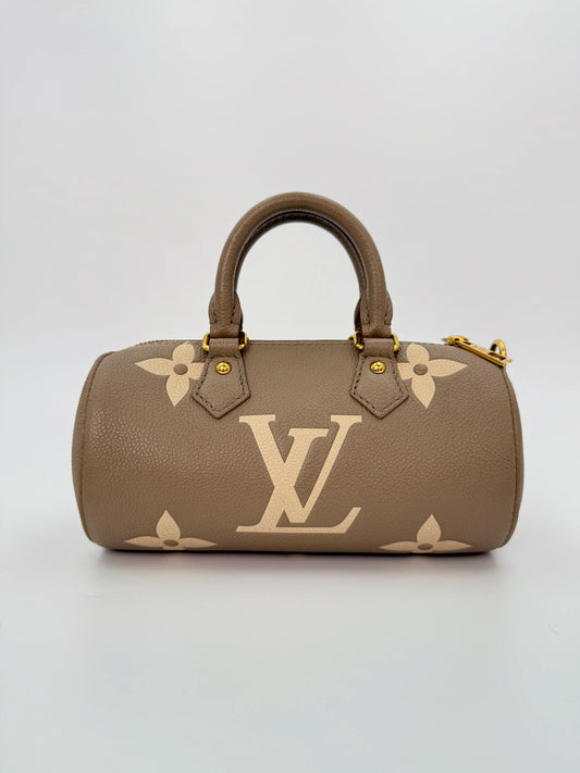 (AJ28) Louis Vuitton Beige Monogram Empreinte Papillon BB Crossbody Bag, Gold Hardware