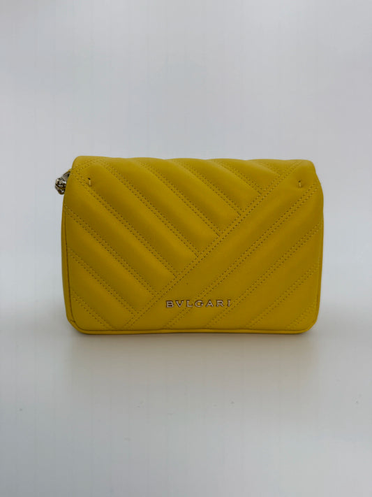 (AJ5) Bvlgari Yellow Calf Leather Serpenti Reverse Shoulder/Crossbody Bag, Champagne Gold Hardware