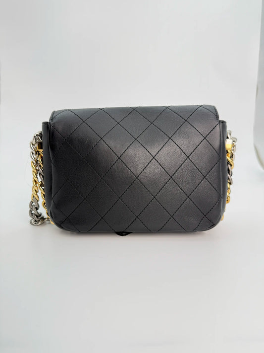 (AJ11) Chanel Black Calf Leather Small Precious Union Flap Bag, Mixed Hardware
