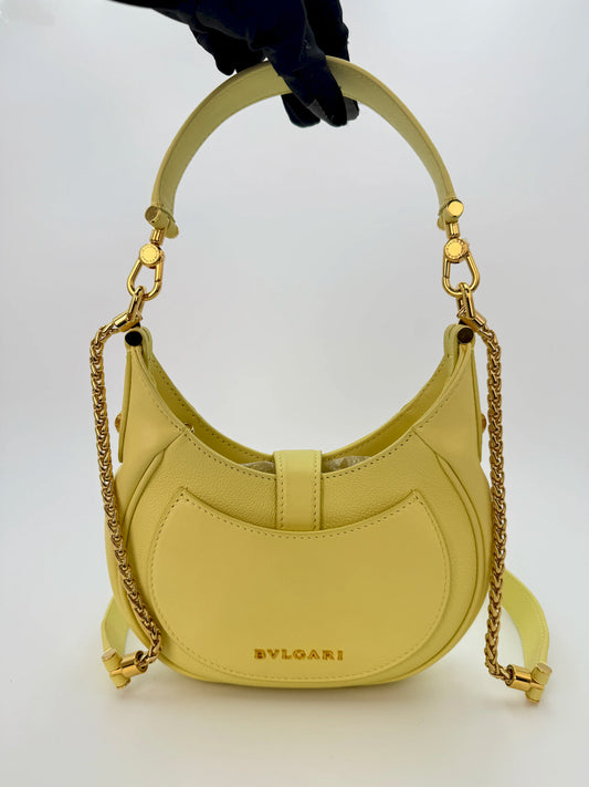 (AJ2) Bvlgari Yellow Calf Leather Small Serpenti Ellipse 2-Way Bag, Gold Hardware