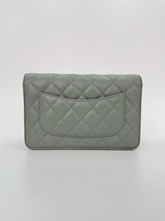 (AJ10) Chanel Grey Caviar Wallet on Chain, Champagne Gold Hardware