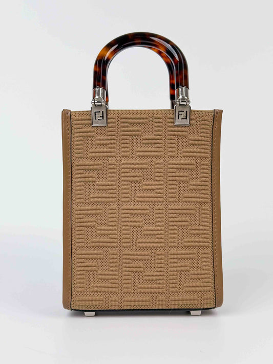 (A63) Fendi Beige Fabric FF Logo Mini Sunshine Shopper Shoulder Bag Silver Hardware