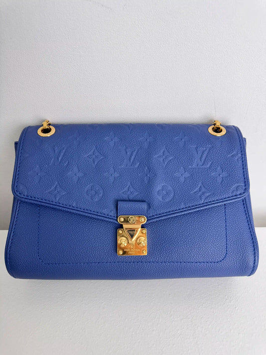 (A19) Louis Vuitton Blue Monogram Empreinte St Germain Bag Gold Hardware Light Wear on Hardware