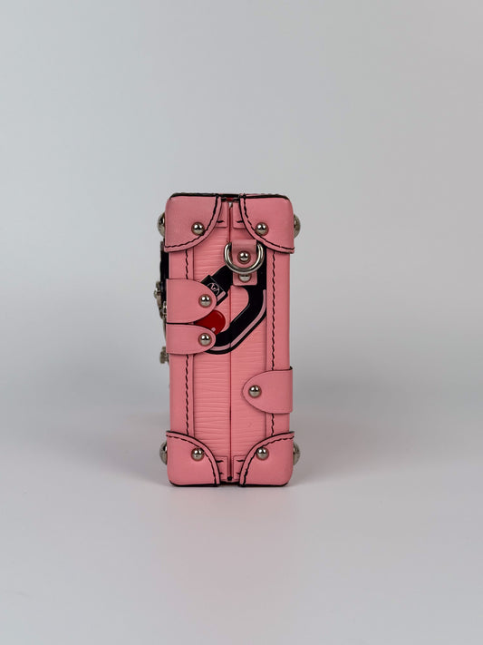 (A88) Louis Vuitton Epi Chain Flower Petite Malle Pink Crossbody Bag Silver Hardware