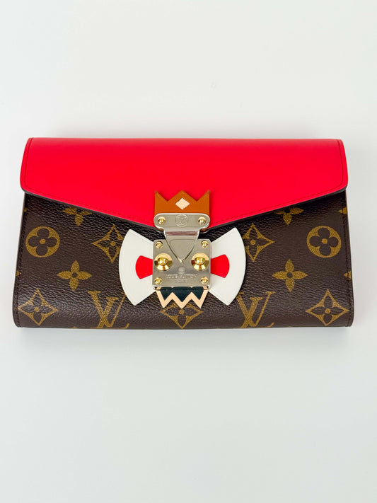 (A106) Louis Vuitton Monogram Tribal Mask Sarah Wallet on Chain, Silver Hardware
