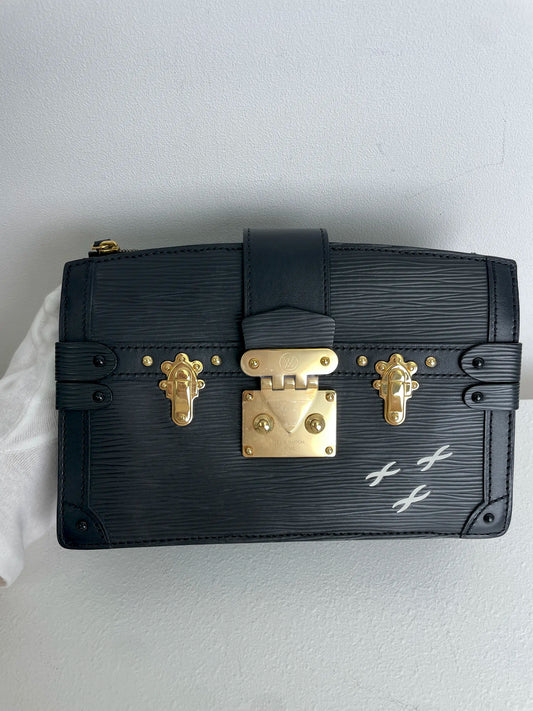 (A29) Louis Vuitton Black Epi Petite Malle Gold Hardware Removable and Adjustable Strap