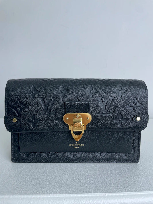 (A30) Louis Vuitton Black Monogram Empreinte Vavin Wallet on Chain Calfskin Gold Hardware Removable Strap