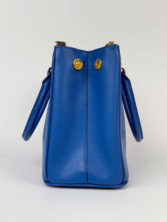 (A92) Prada Blue Galleria Saffiano Leather Bag Gold Hardware