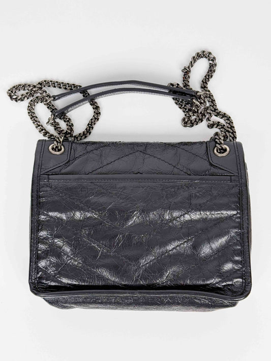 (A52) YSL Small Black Niki Bag Ruthenium Hardware