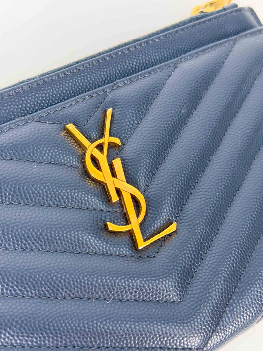(A114) YSL Grey Chevron Caviar Pouch, Gold Hardware