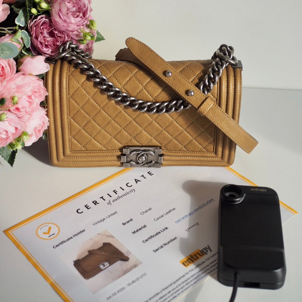 Every bag we sell is carefully inspected by our experienced team and professionally authenticated using Entrupy — a leading AI-powered authentication service trusted by top resellers worldwide.