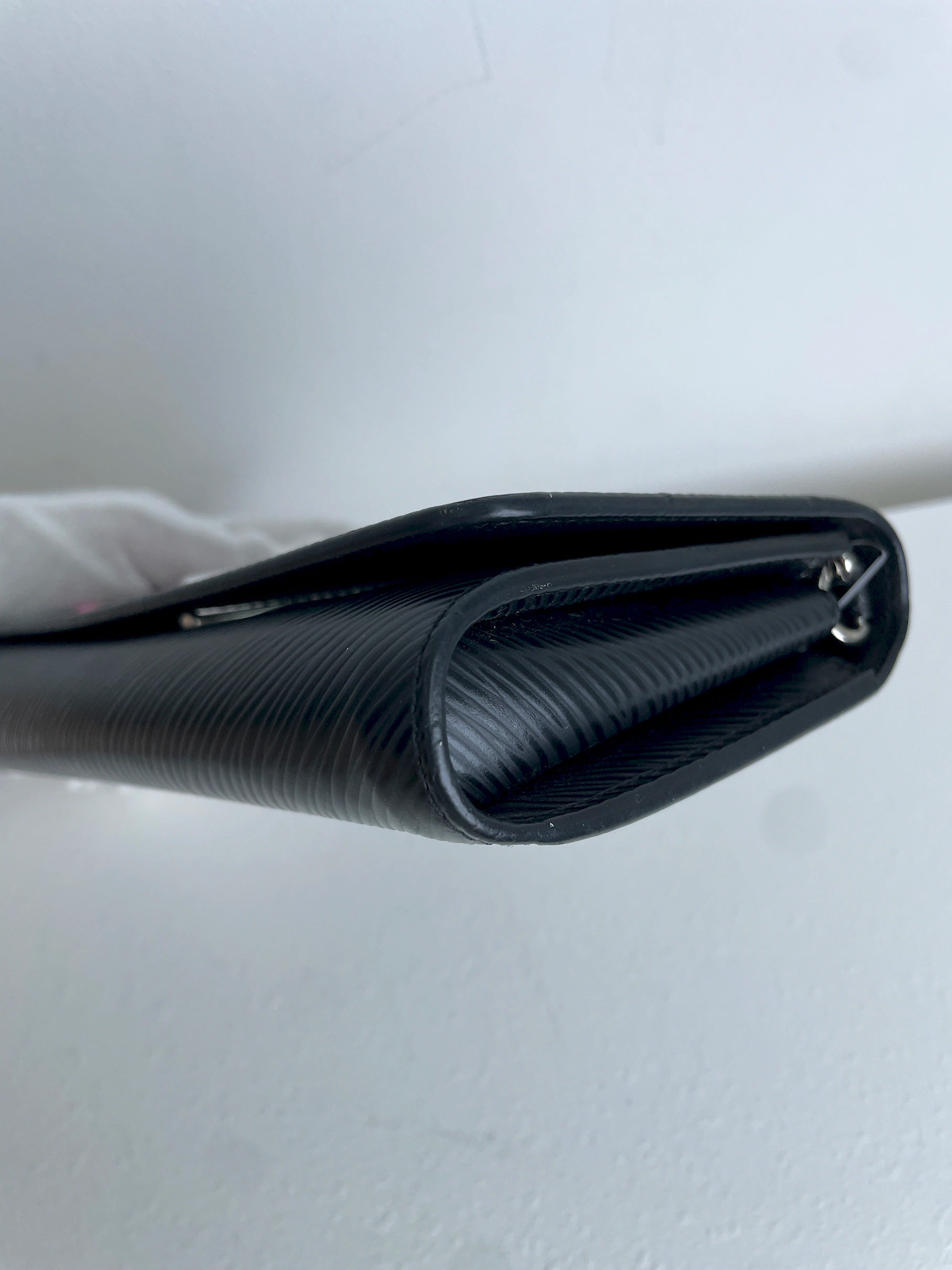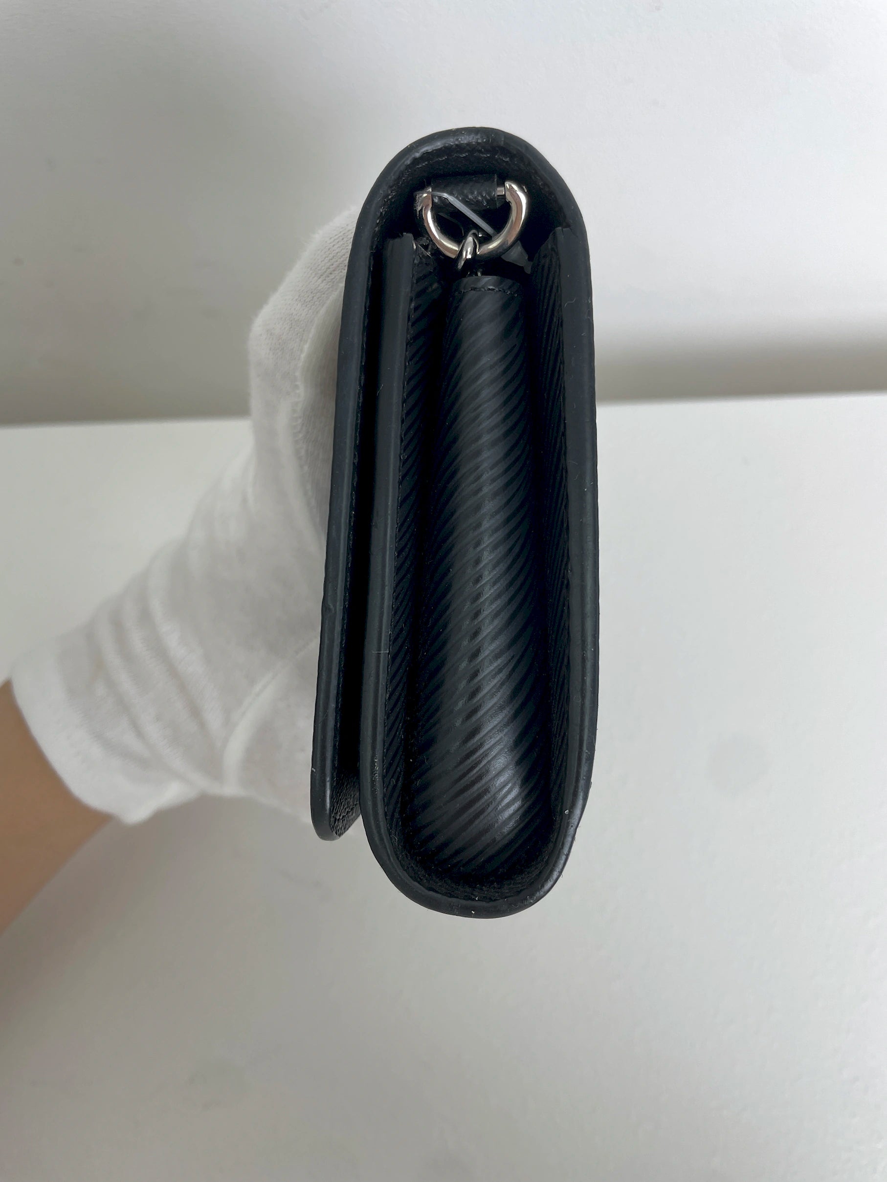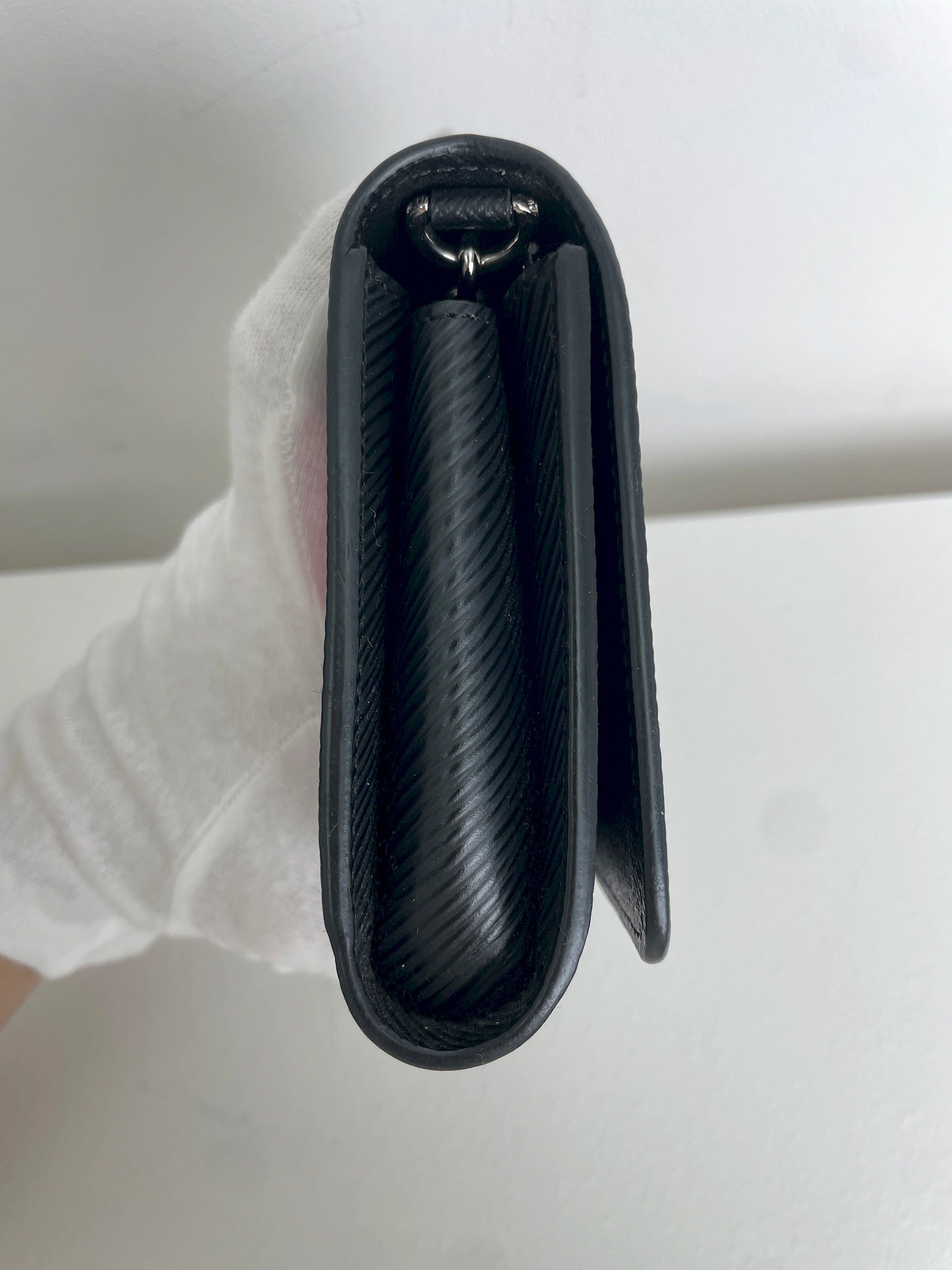 (A21) Louis Vuitton Black Epi Twist Wallet on Chain Silver Hardware With Code