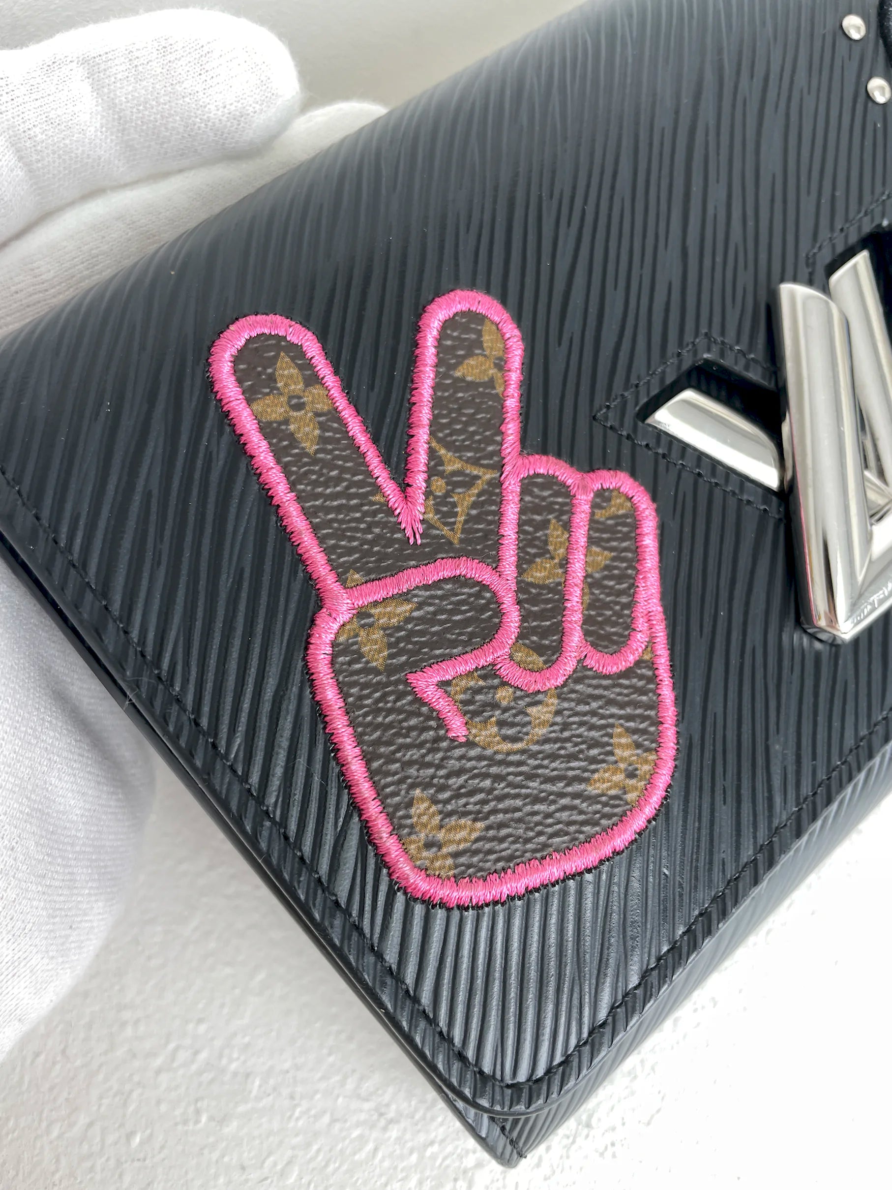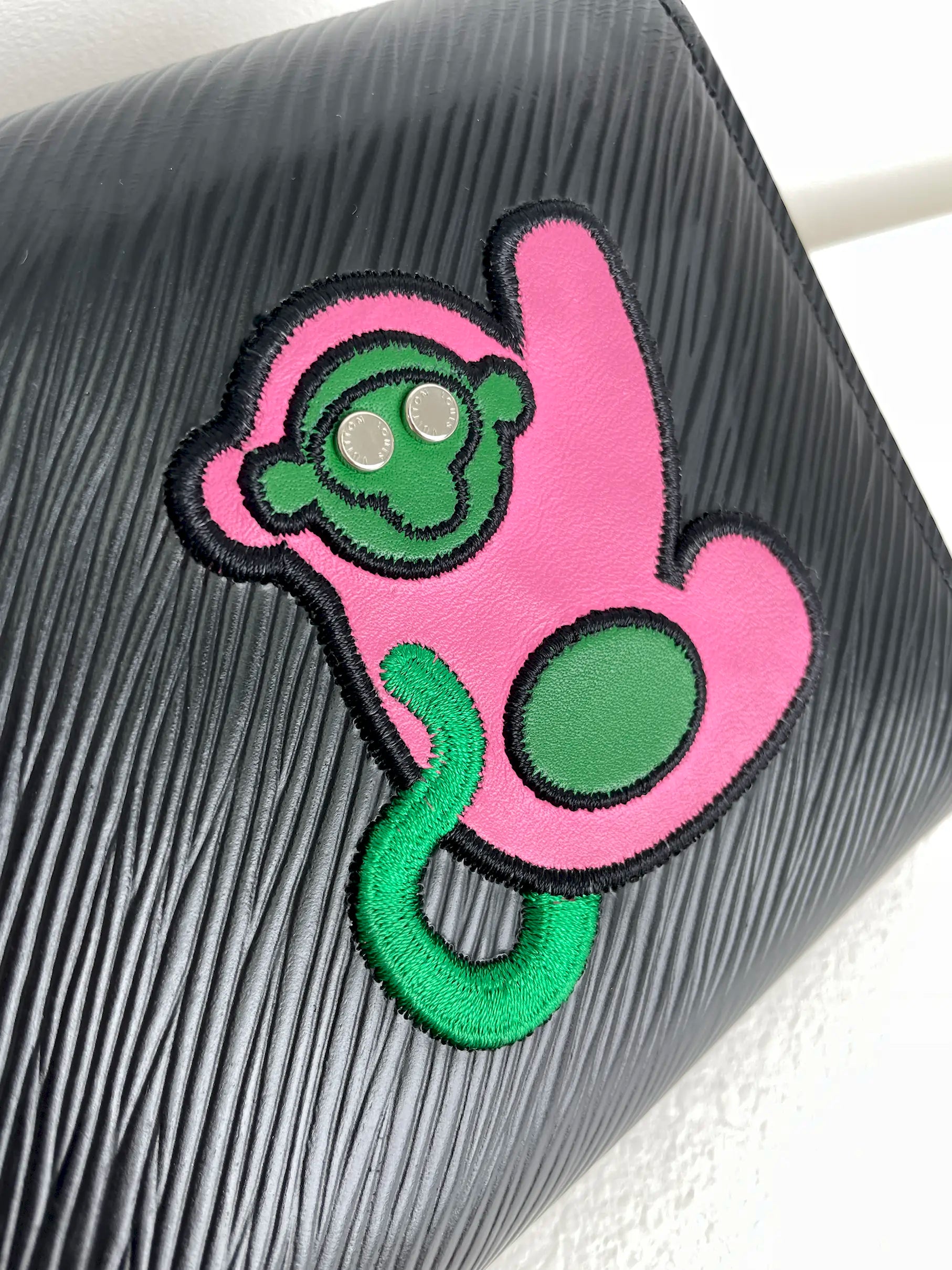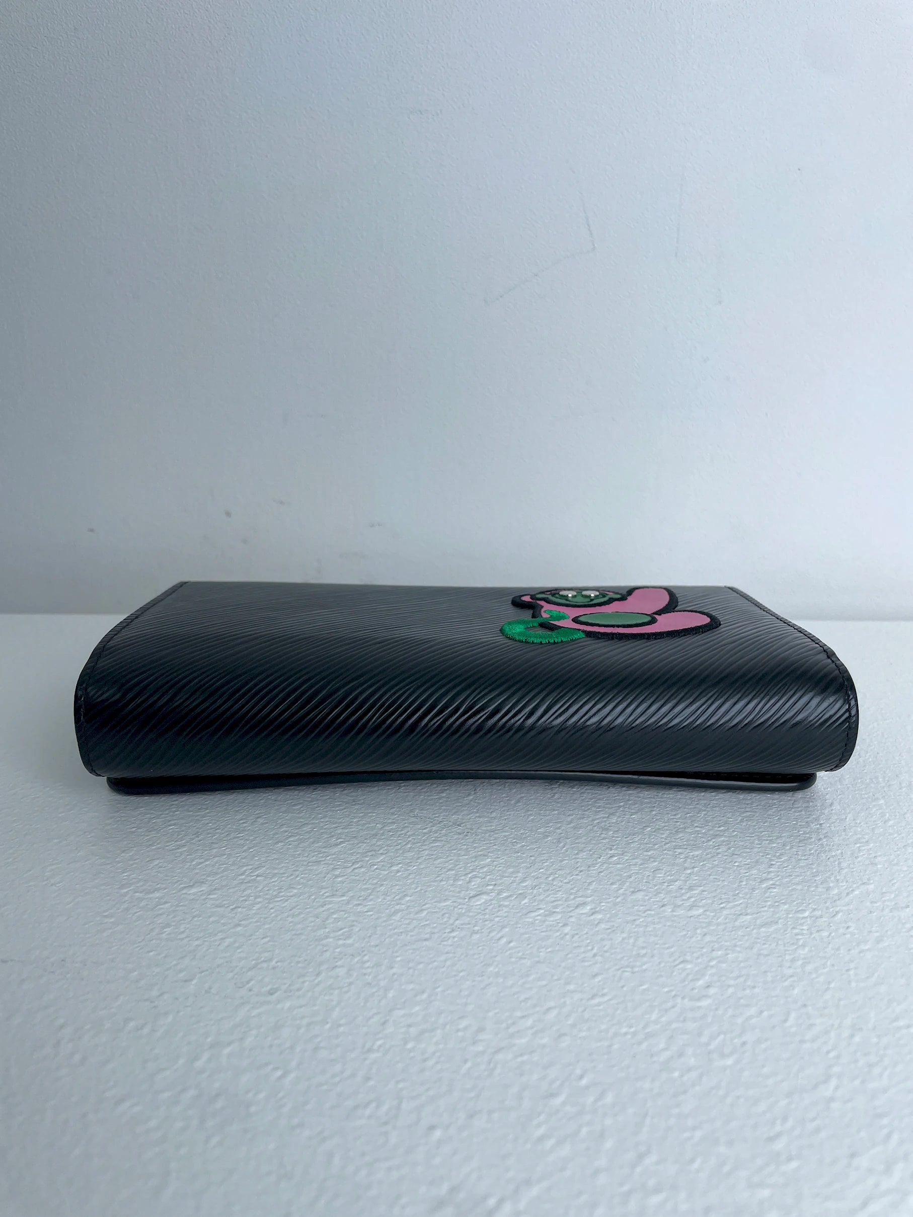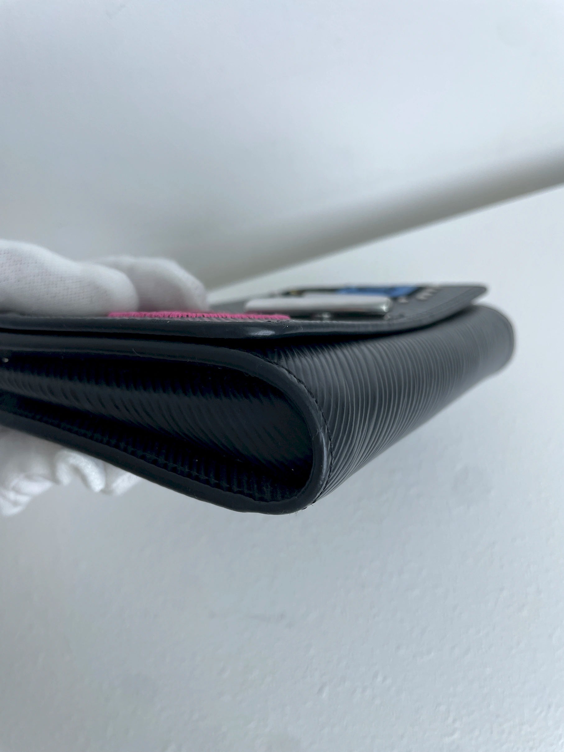 (A21) Louis Vuitton Black Epi Twist Wallet on Chain Silver Hardware With Code