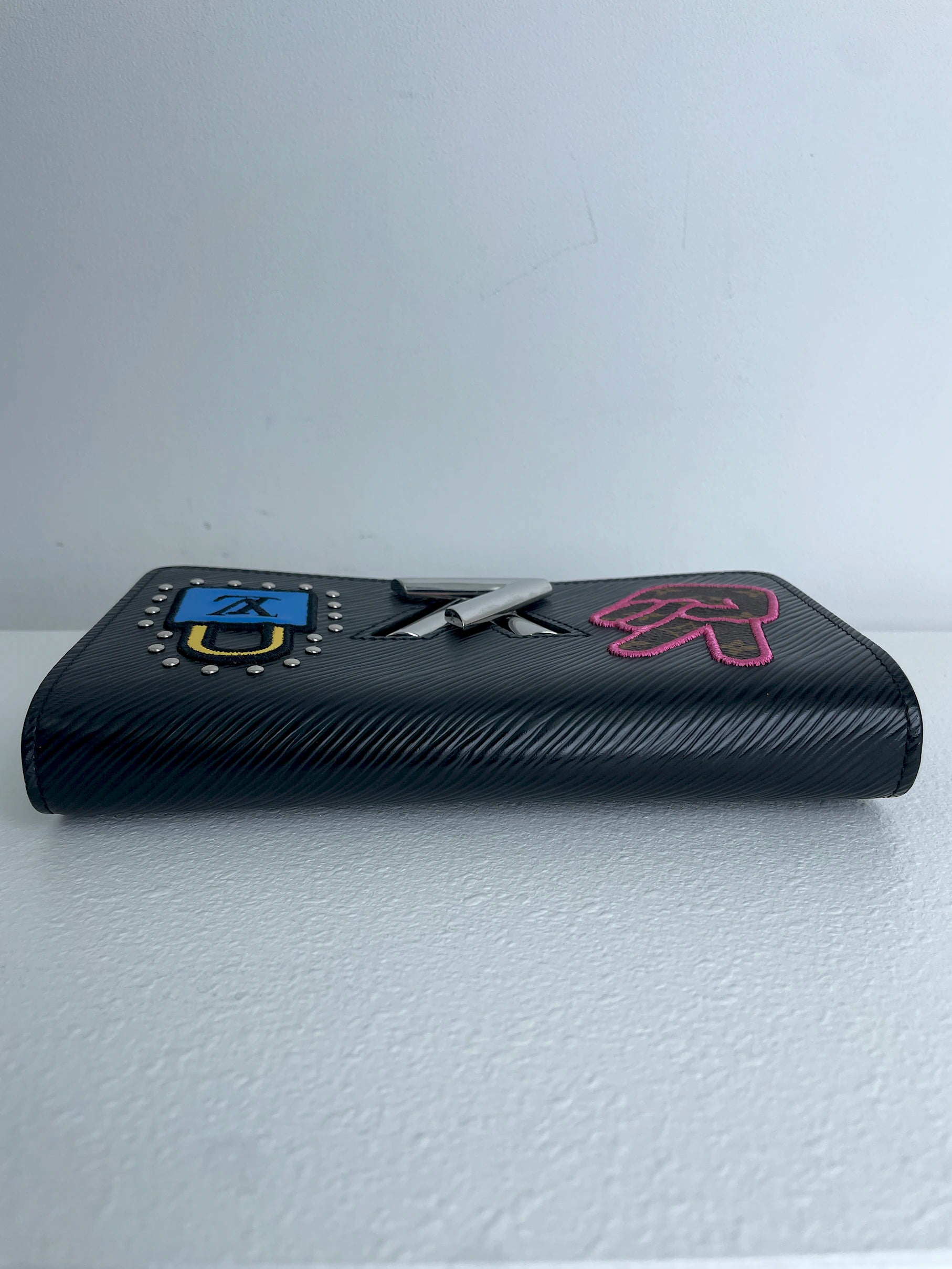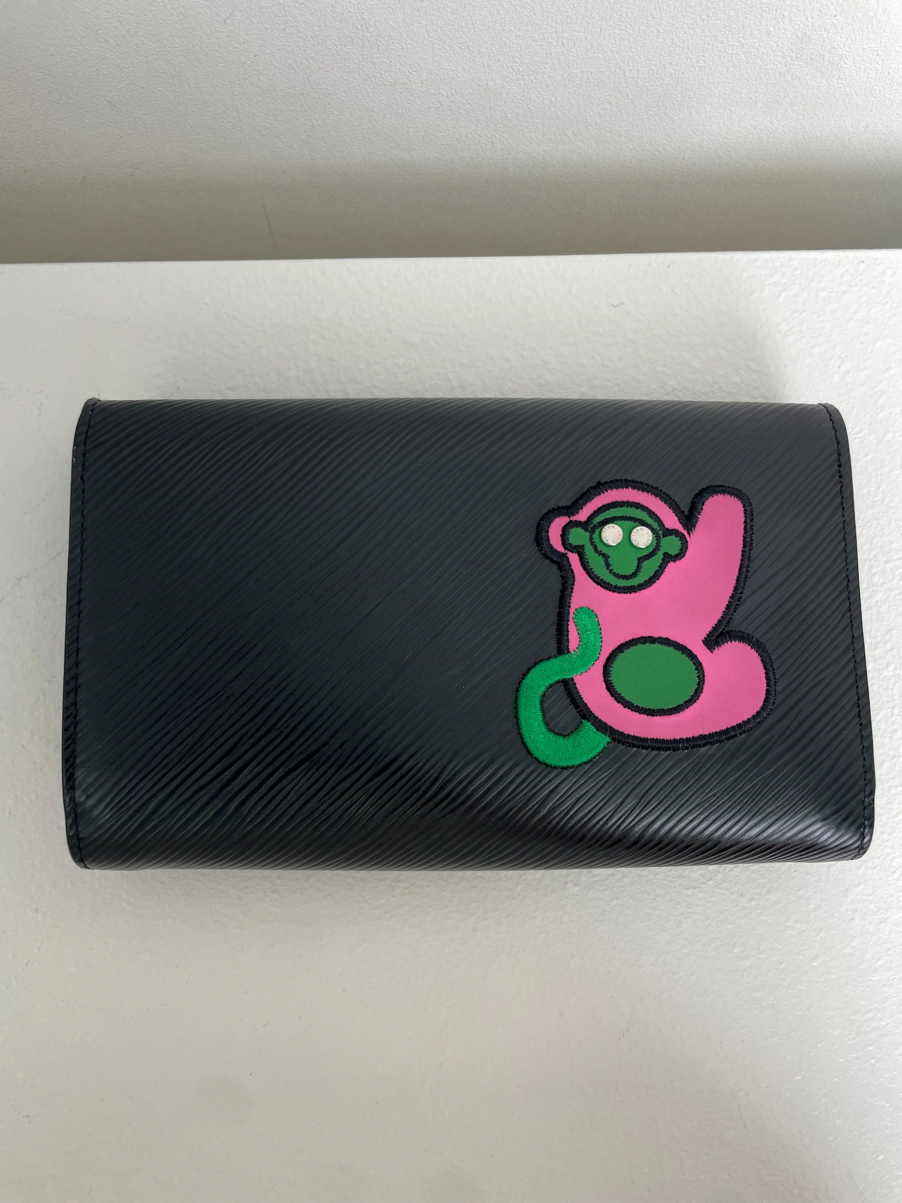 This Louis Vuitton Twist Wallet on Chain is crafted from the brand’s iconic black Epi leather, offering both durability and a refined texture. The sleek silhouette is complemented by silver-tone hardware, including the signature LV Twist lock. Designed for versatility, it can be worn crossbody or as a clutch, making it perfect for day-to-night styling. Inside, it offers well-organized compartments for your essentials while maintaining a compact profile.