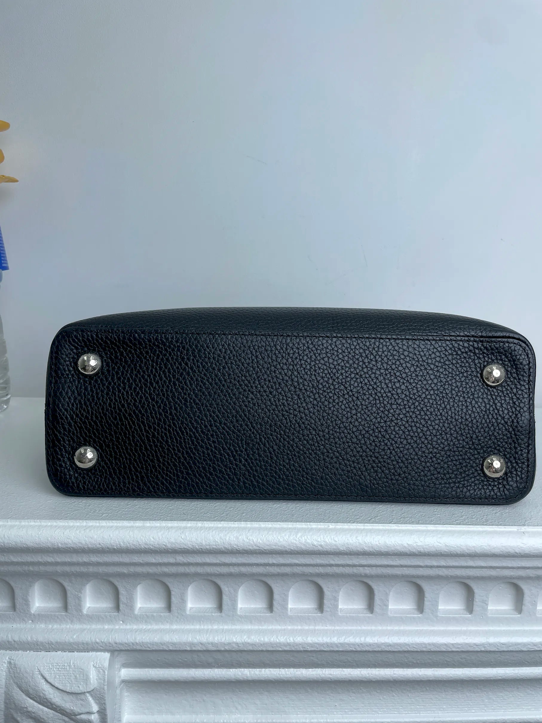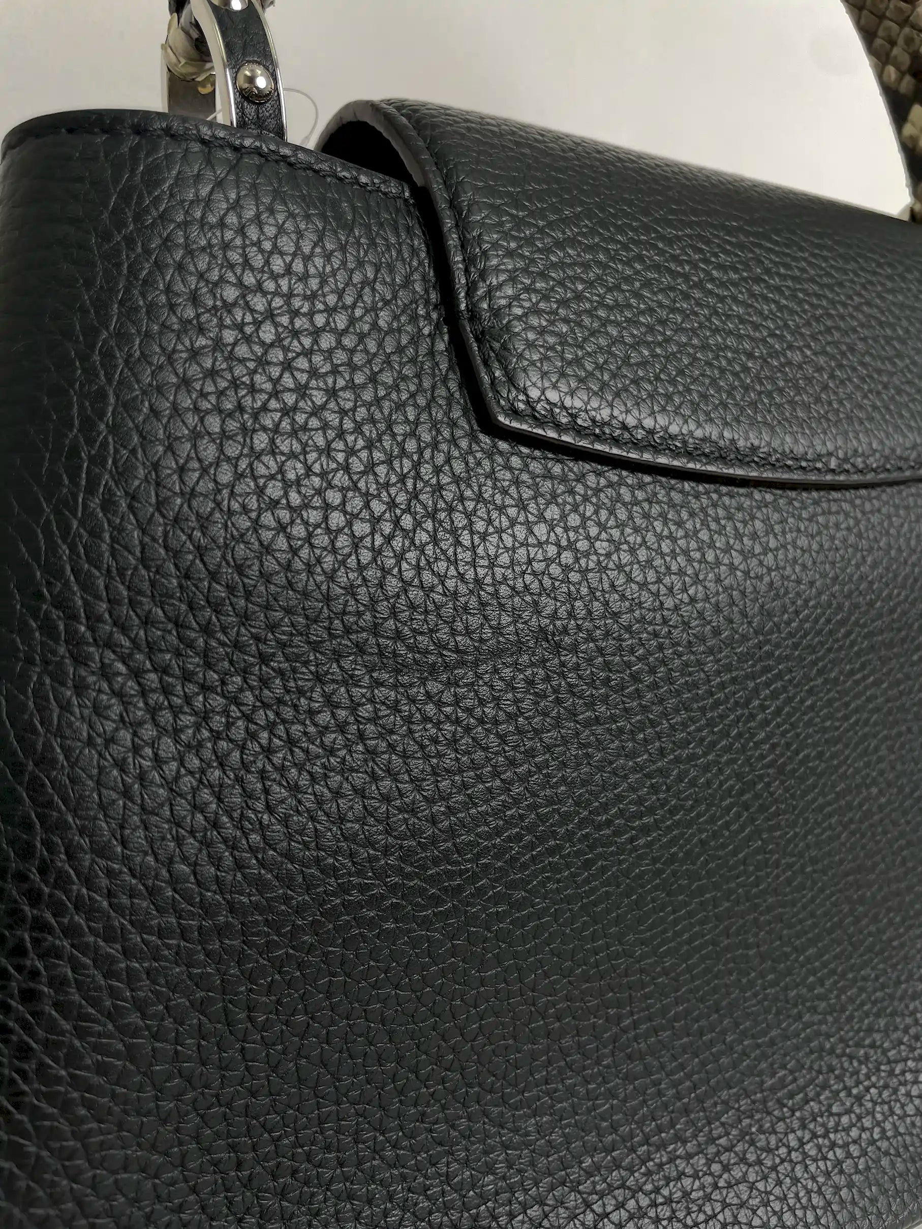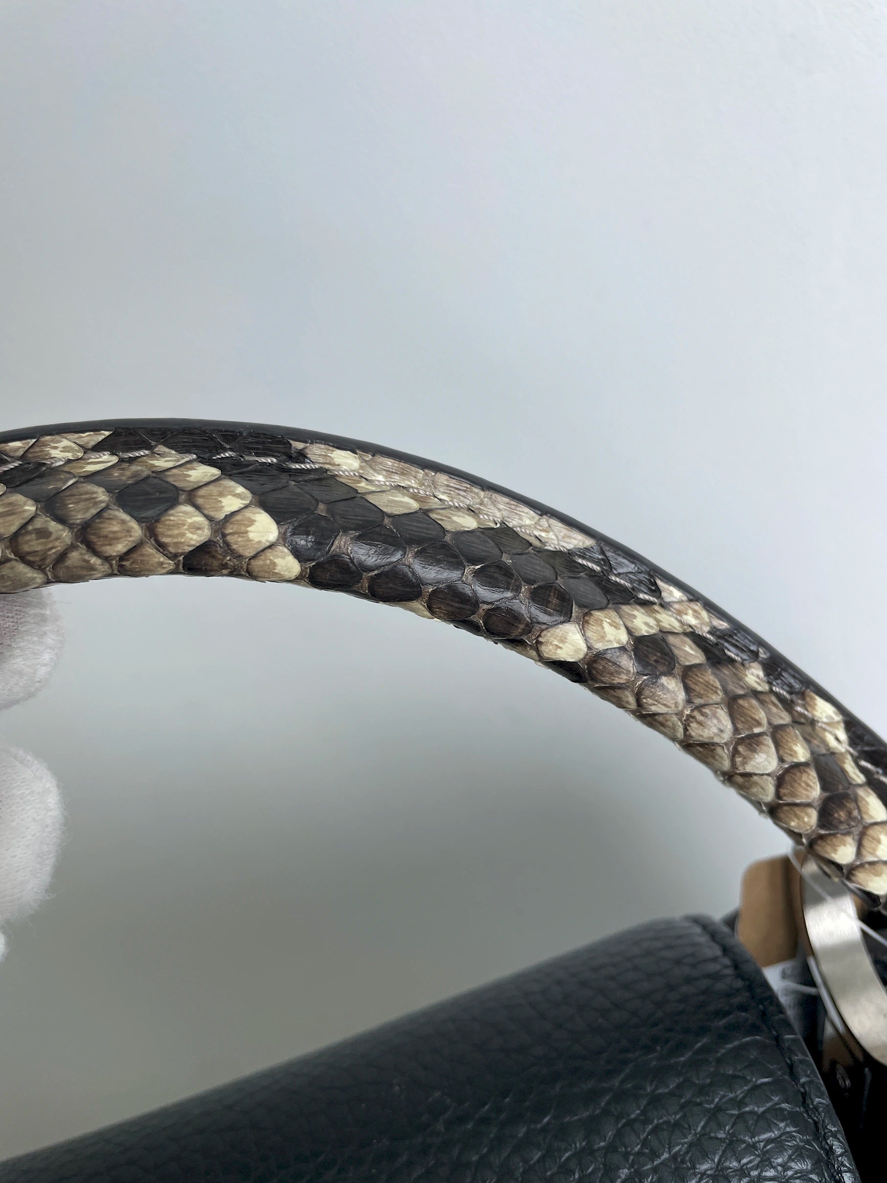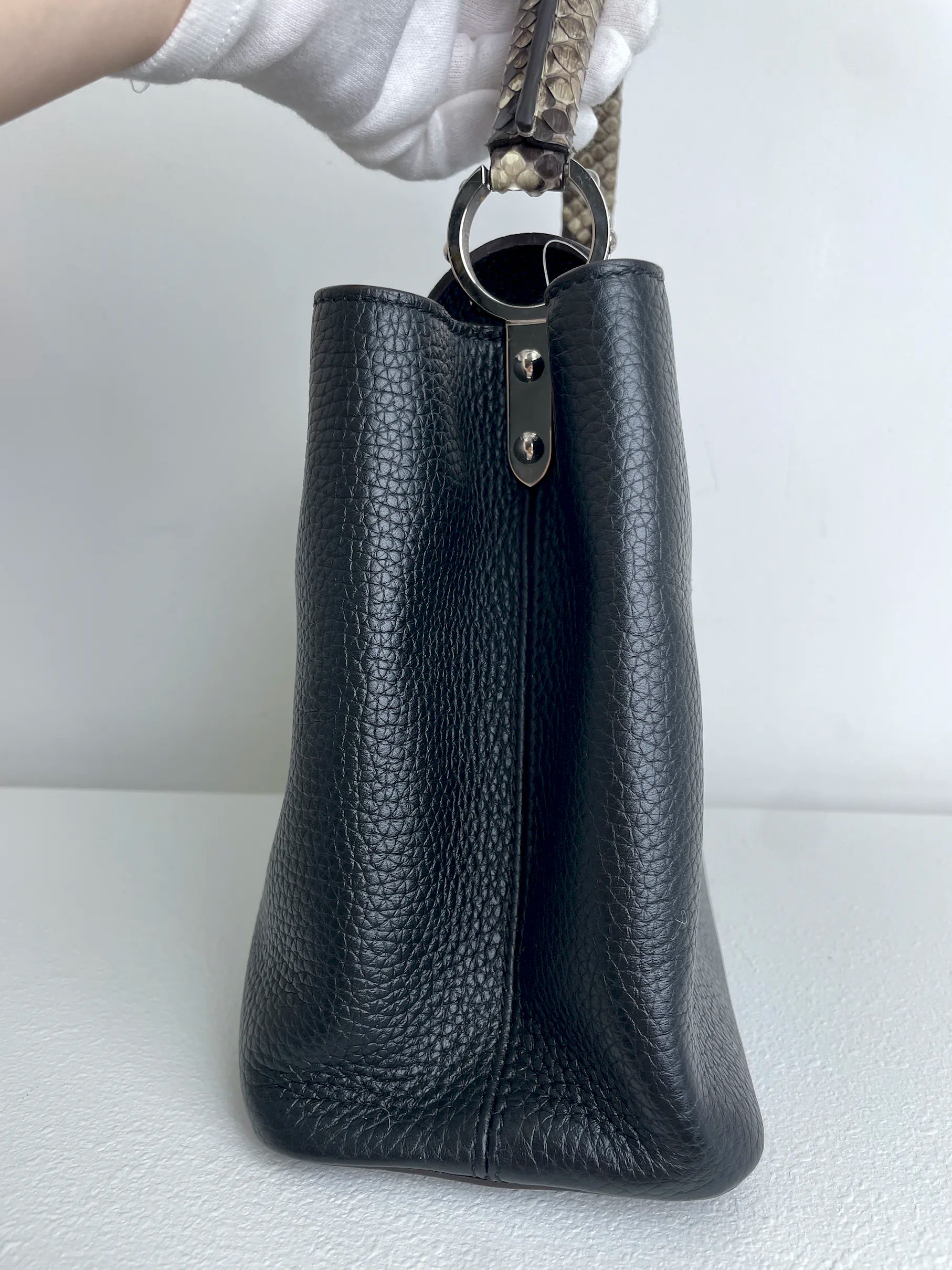 (A28) Louis Vuitton MM Black with Python Capucines Silver Hardware Python and Leather Strap