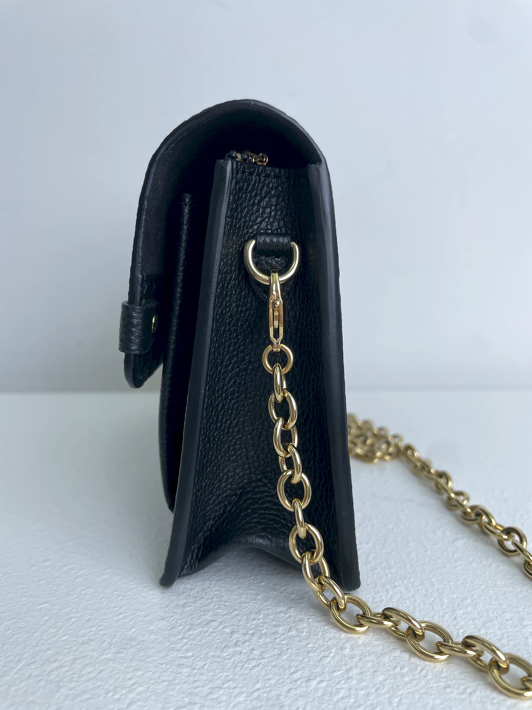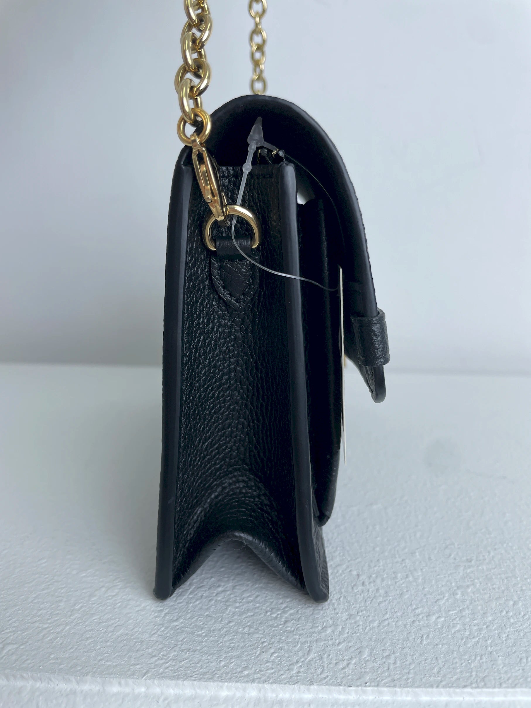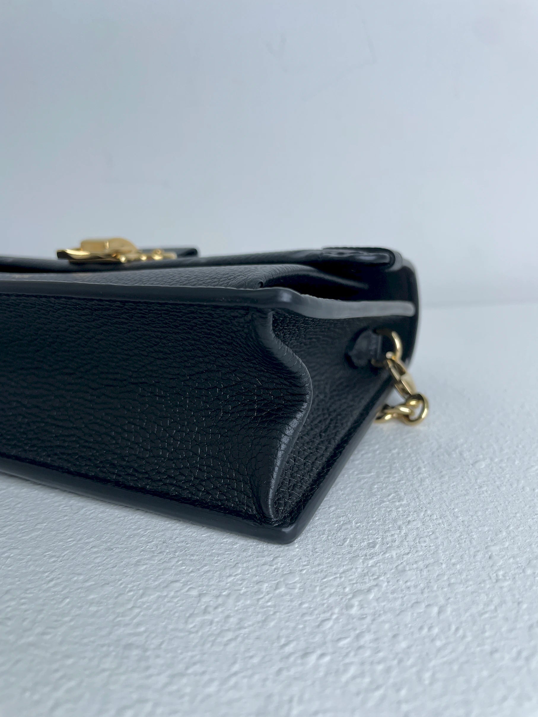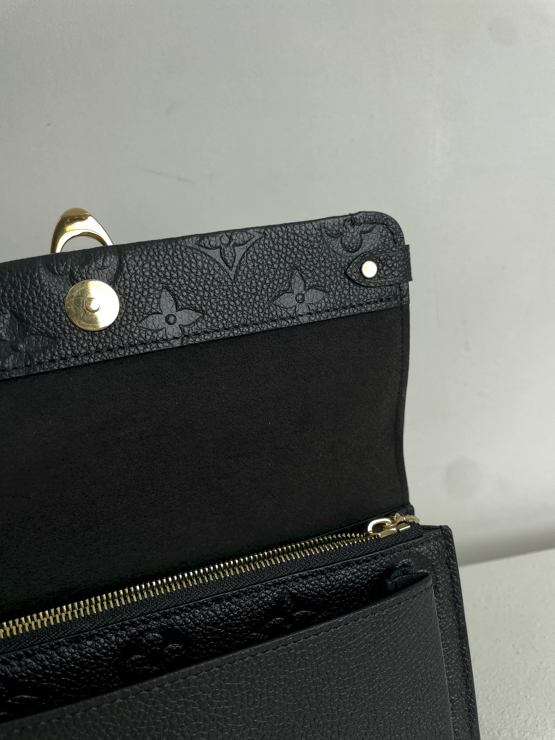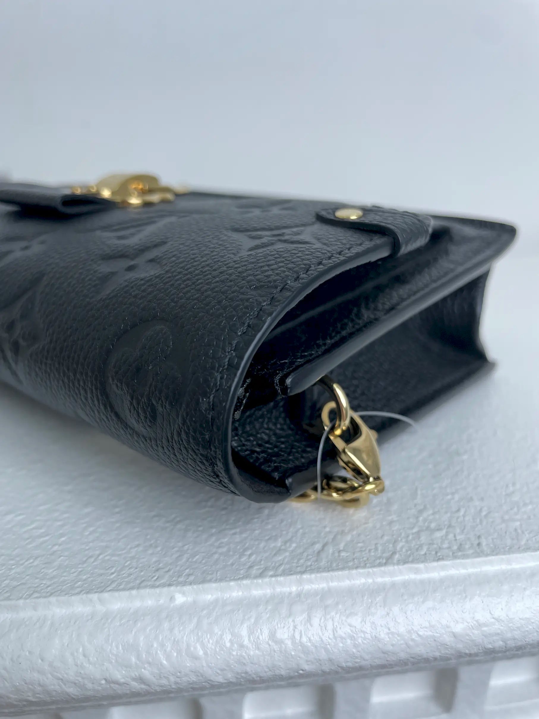 (A30) Louis Vuitton Black Monogram Empreinte Vavin Wallet on Chain Calfskin Gold Hardware Removable Strap