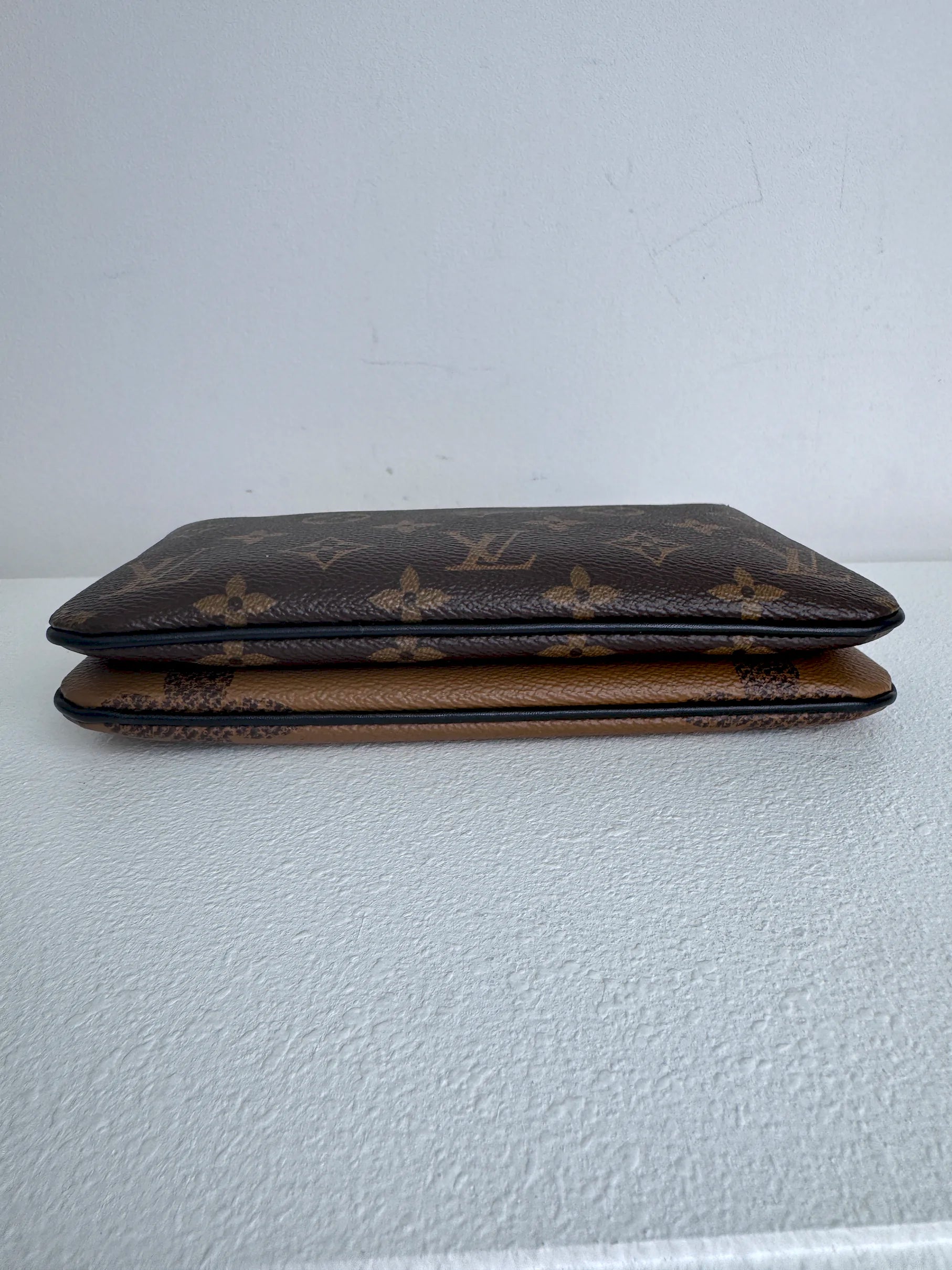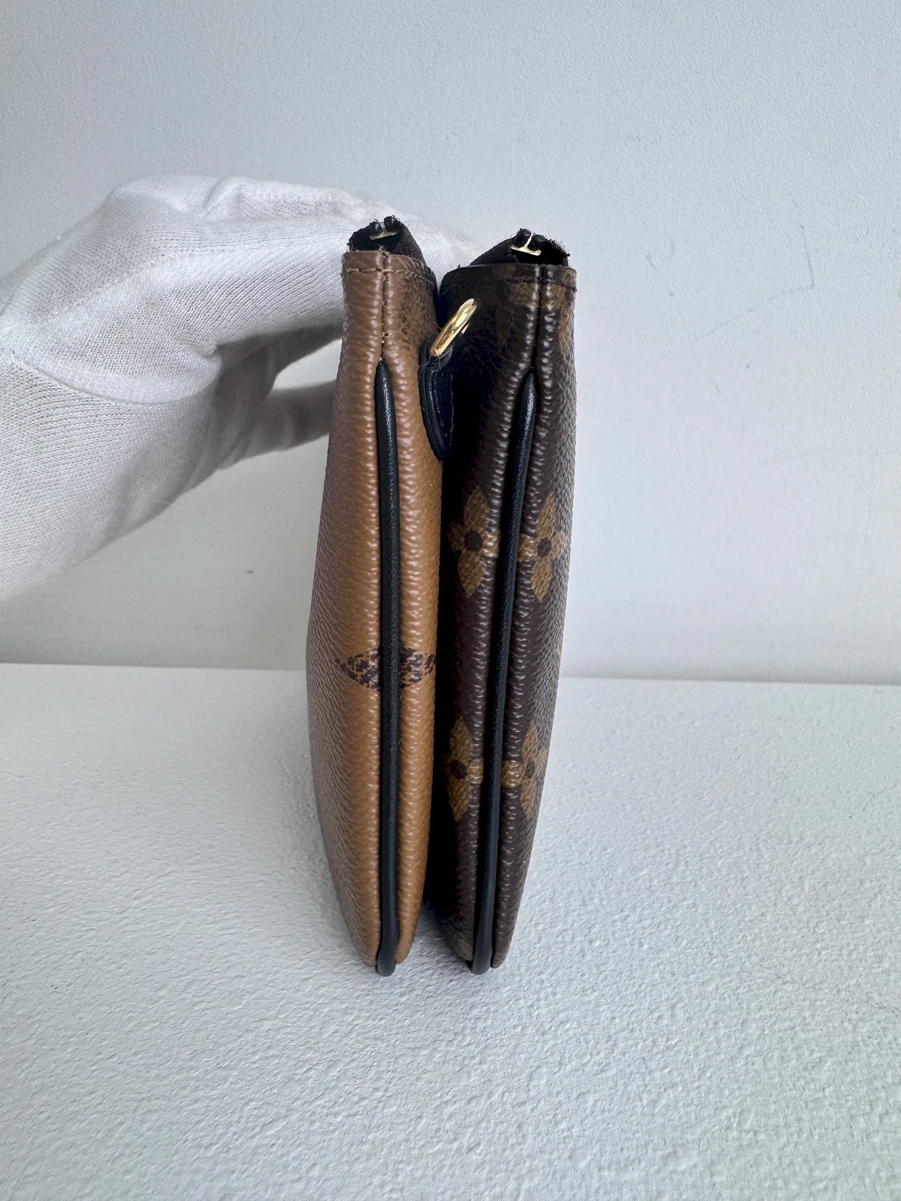 (A38) Louis Vuitton Reverse Monogram Double Zip Pochette Gold Hardware