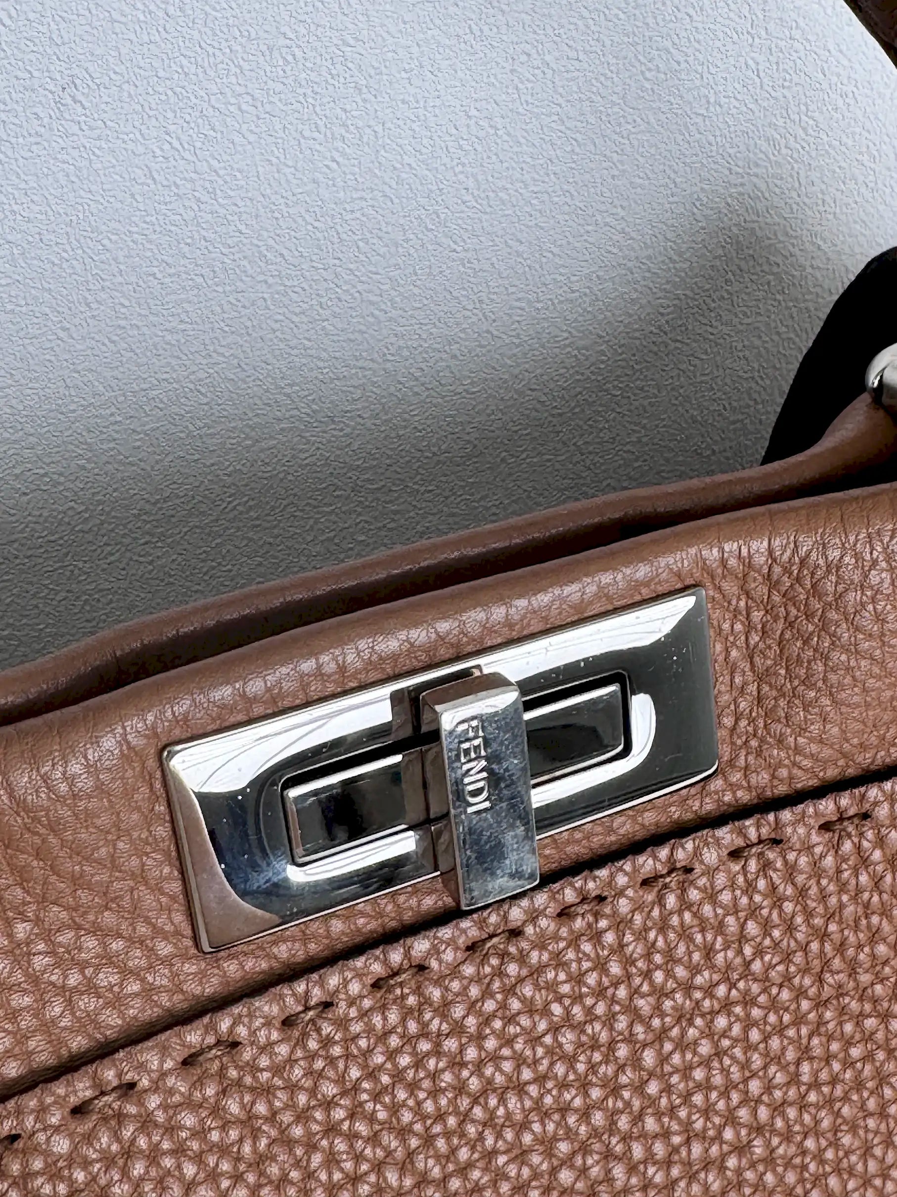 (A47) Fendi Brown Peekaboo Selleria Medium Calfskin Silver Hardware