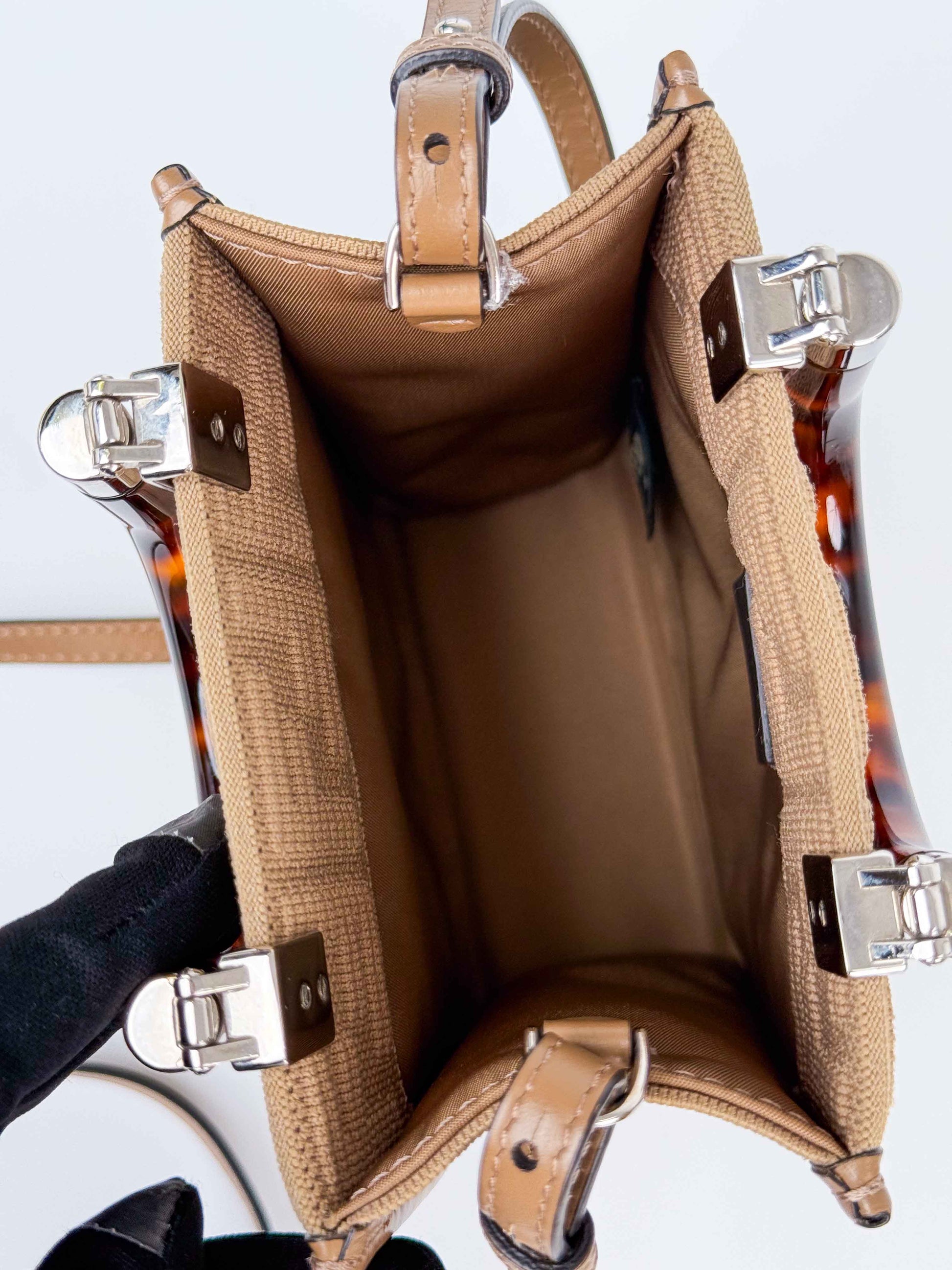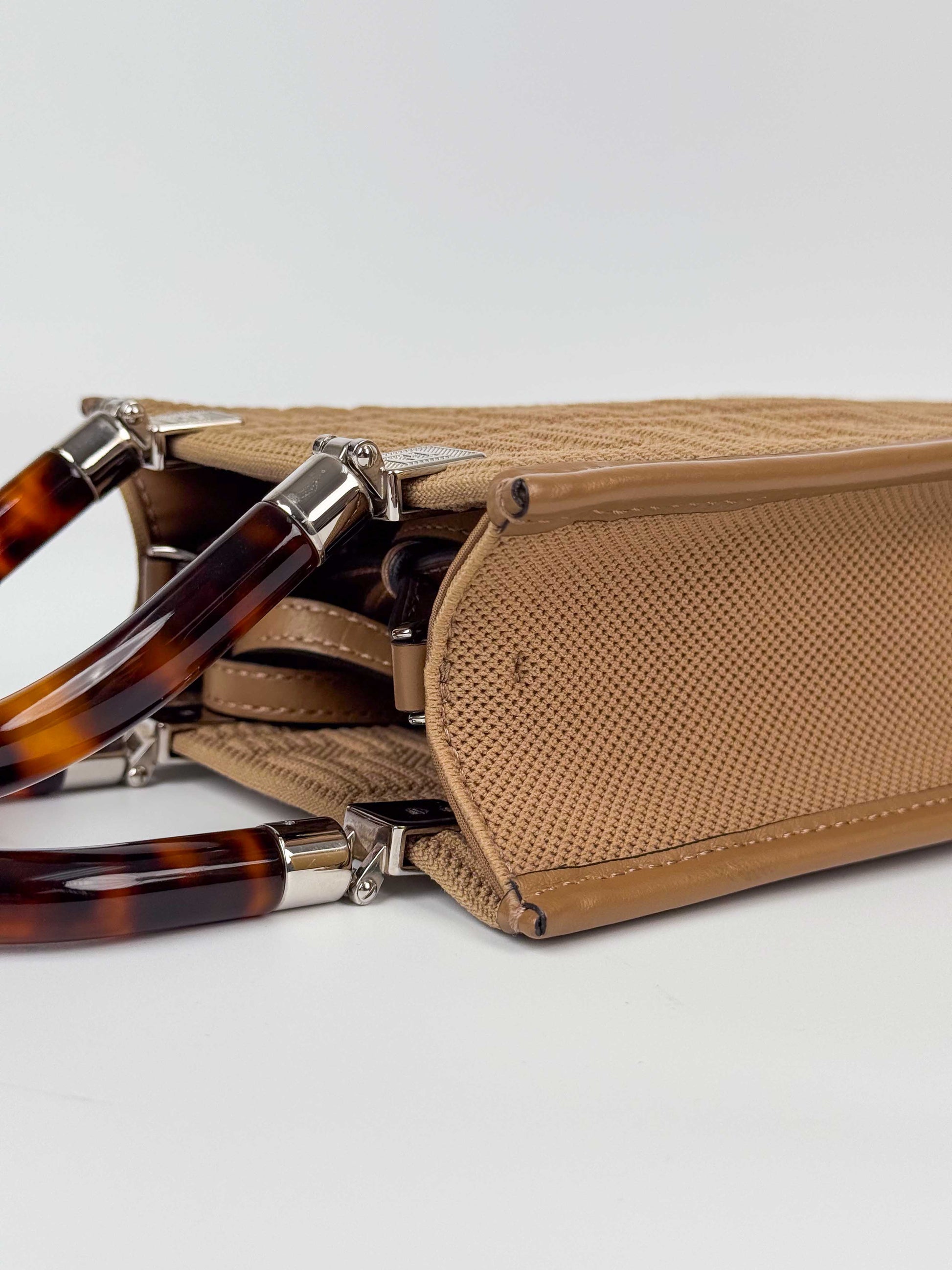 (A63) Fendi Beige Fabric FF Logo Mini Sunshine Shopper Shoulder Bag Silver Hardware