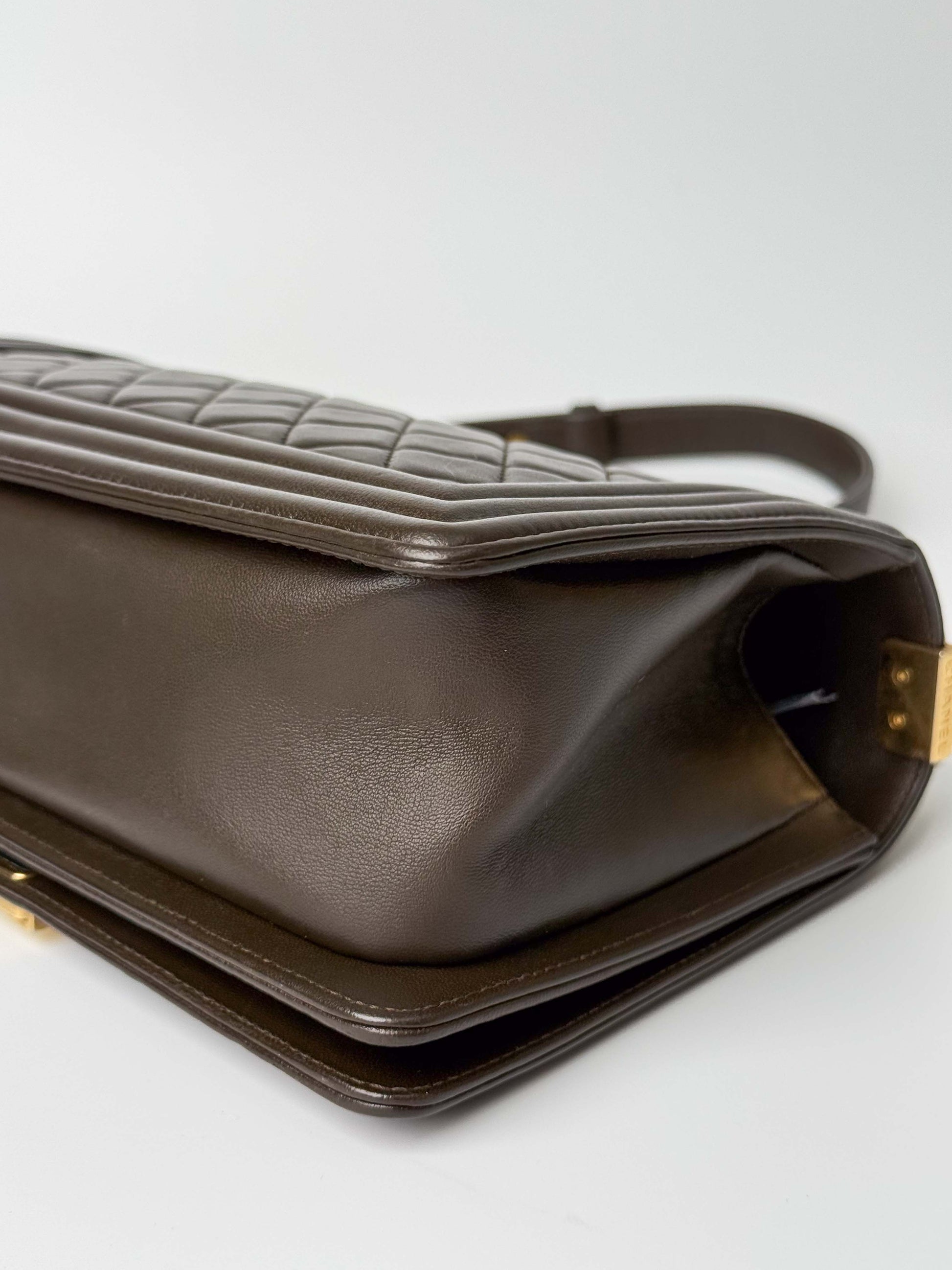 (A81) Chanel Brown Calf Leather Medium Le Boy Bag Gold Hardware