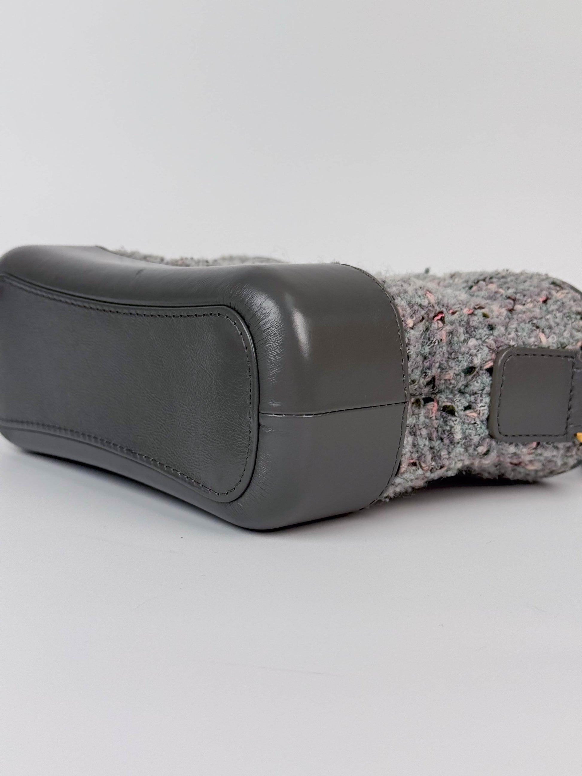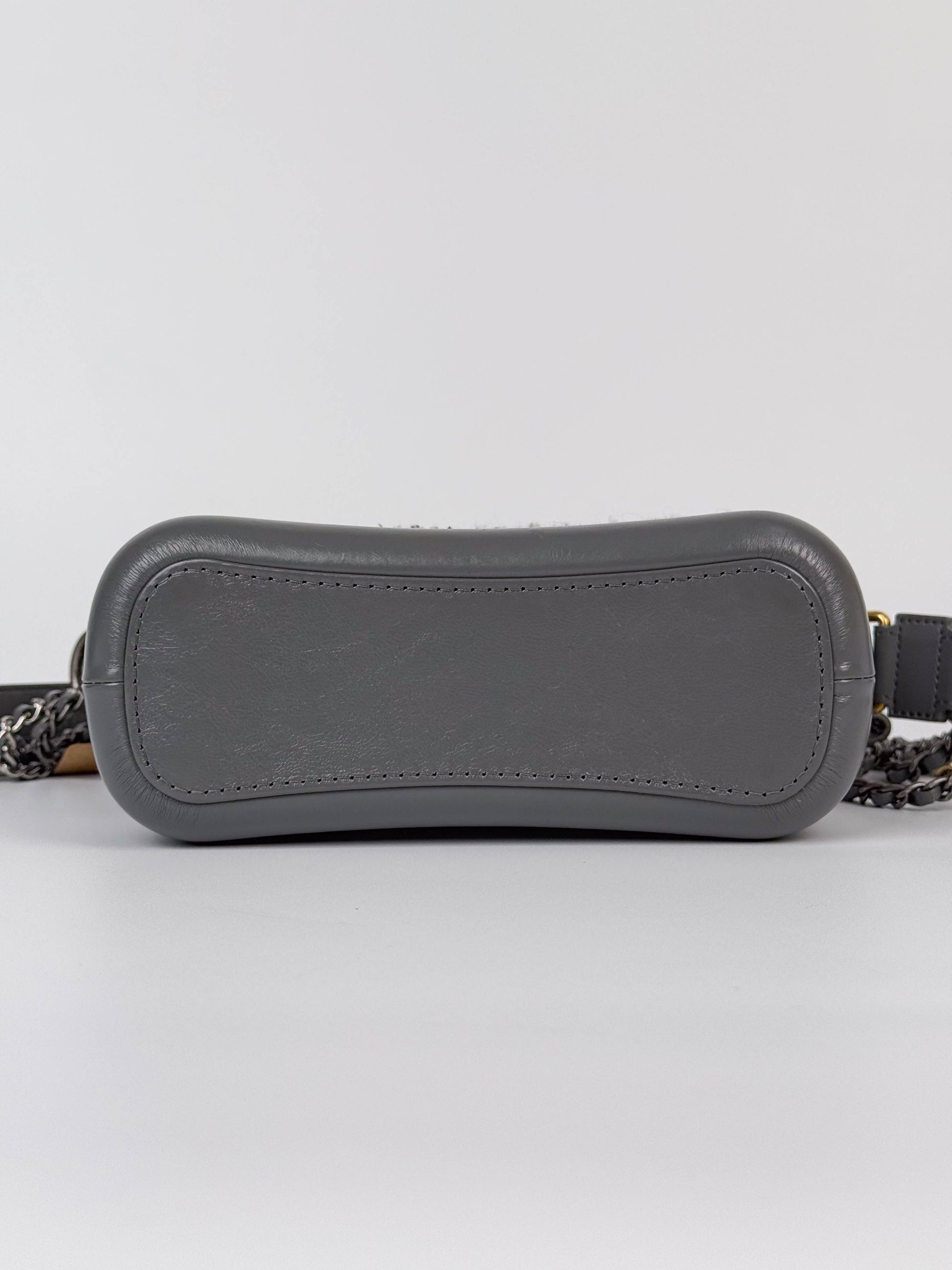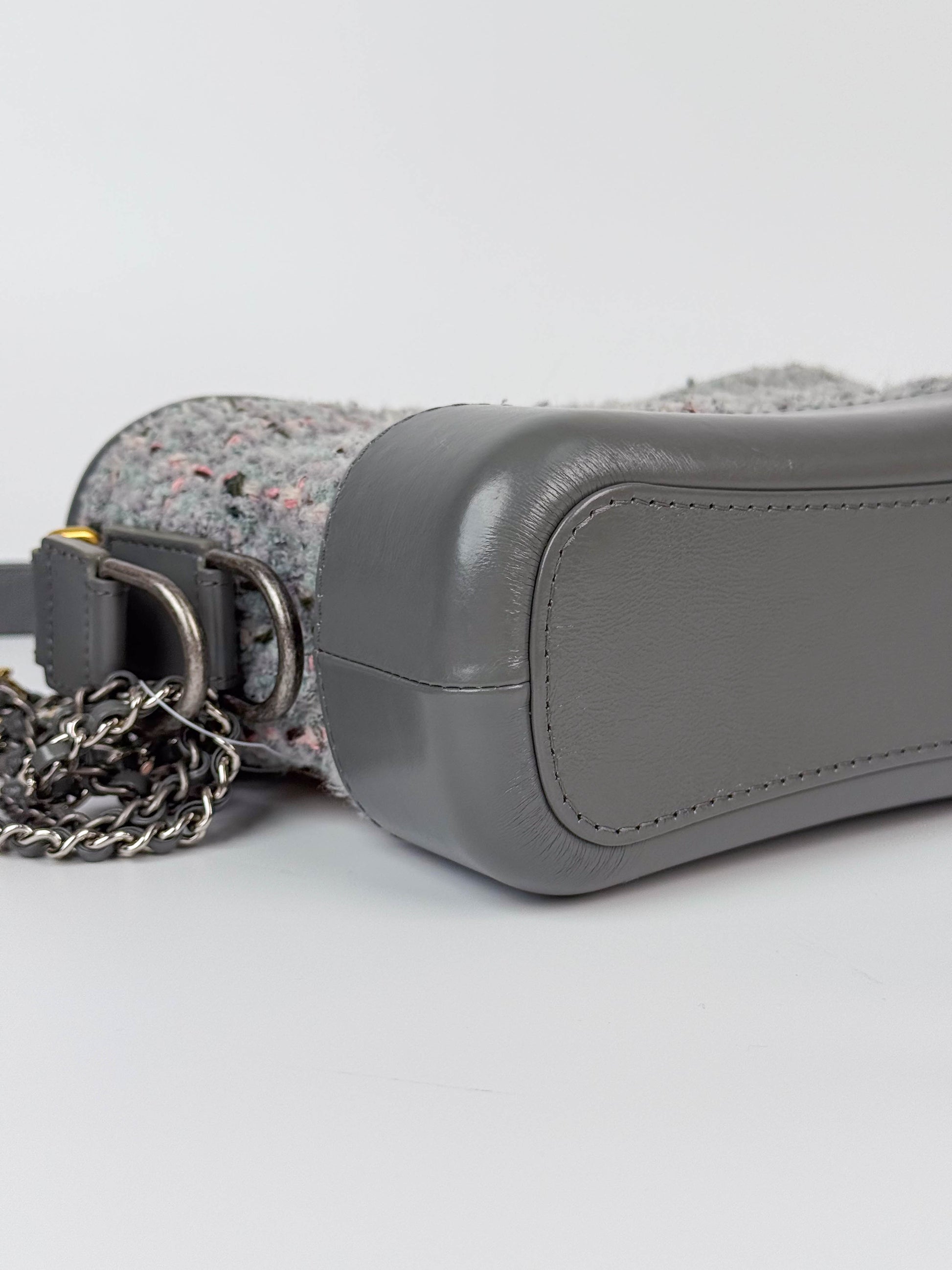 (A91) Chanel Grey Calf Leather/Tweed Small Gabrielle Hobo Bag Multi-Tone Hardware