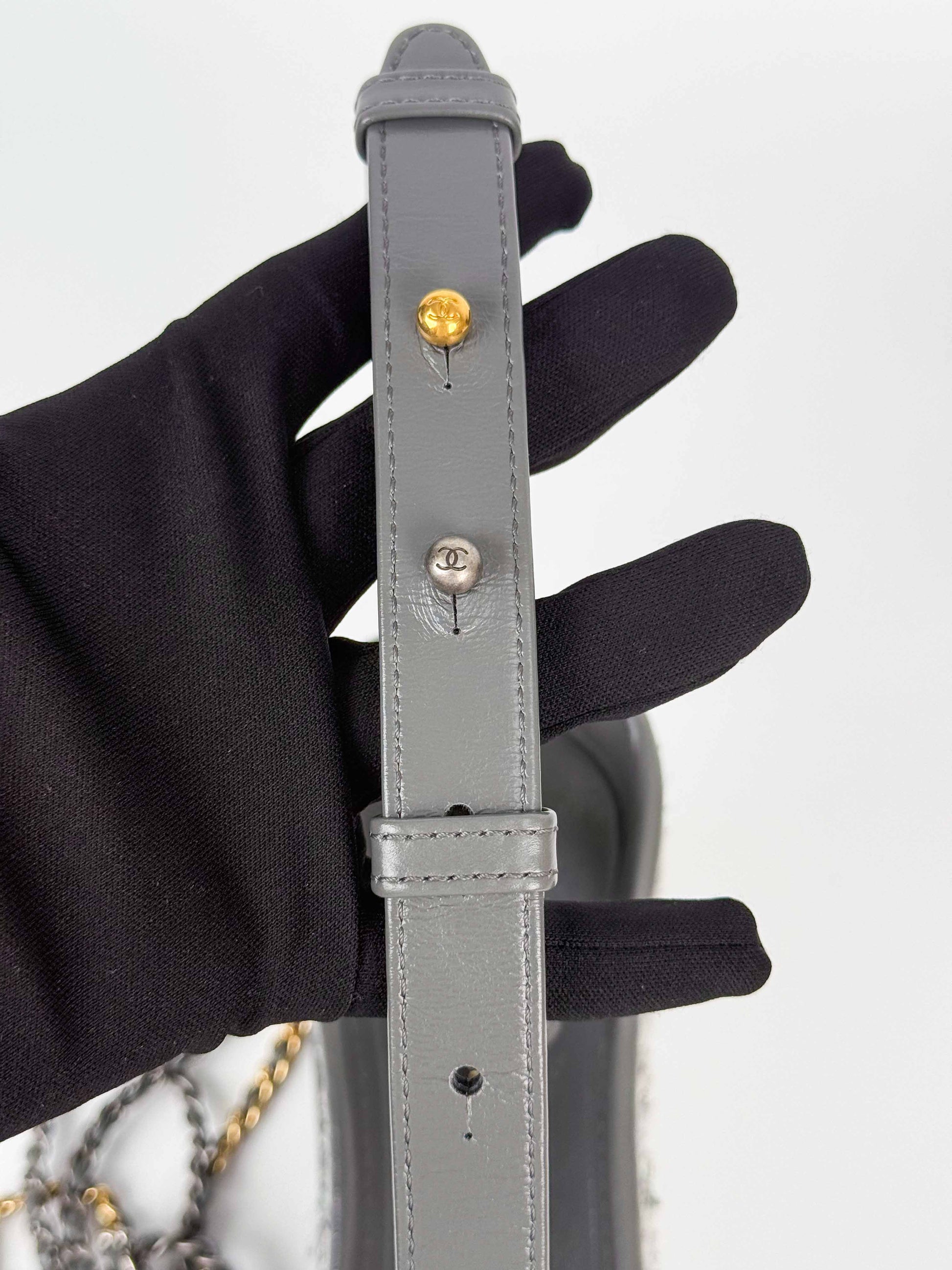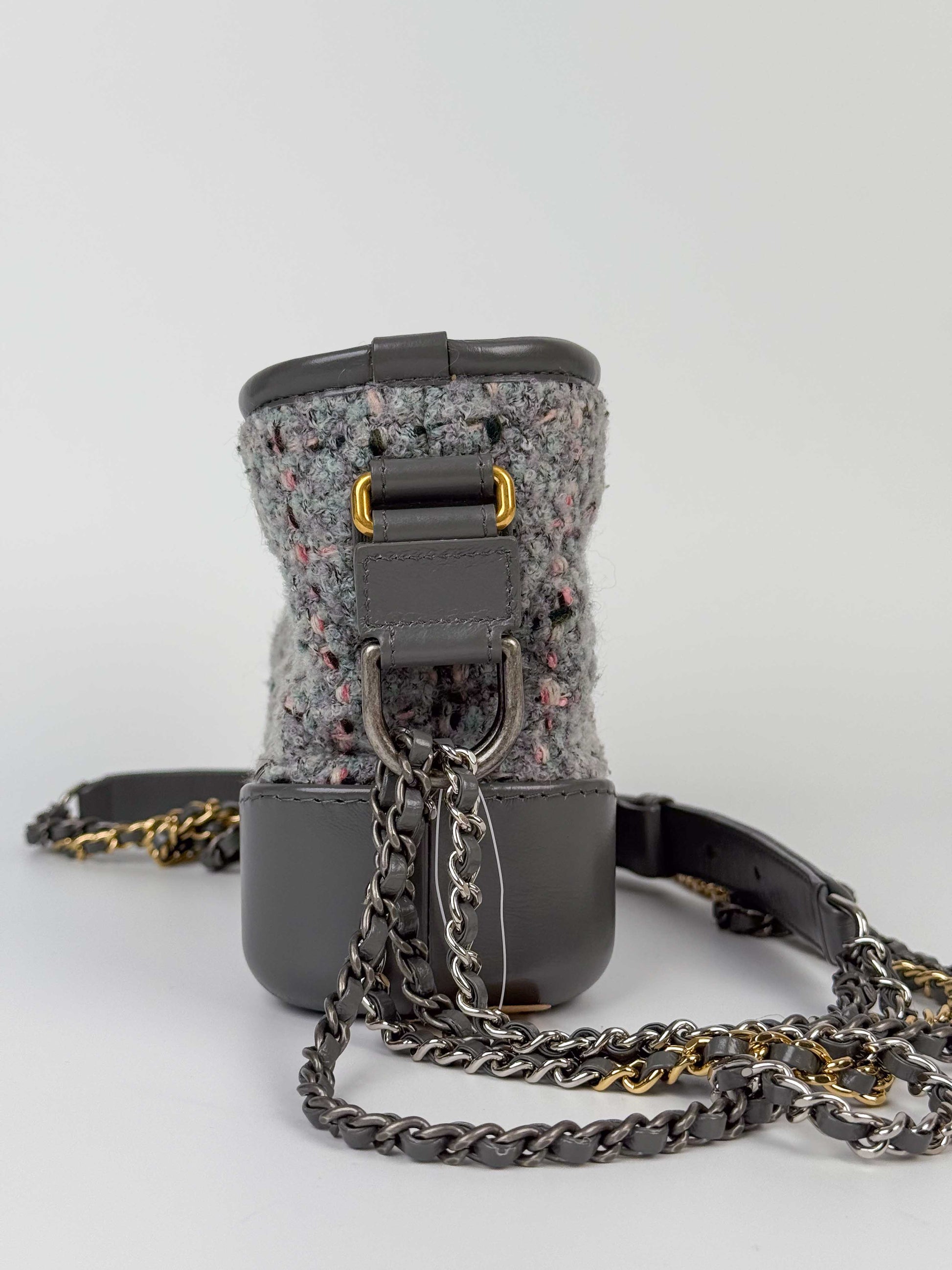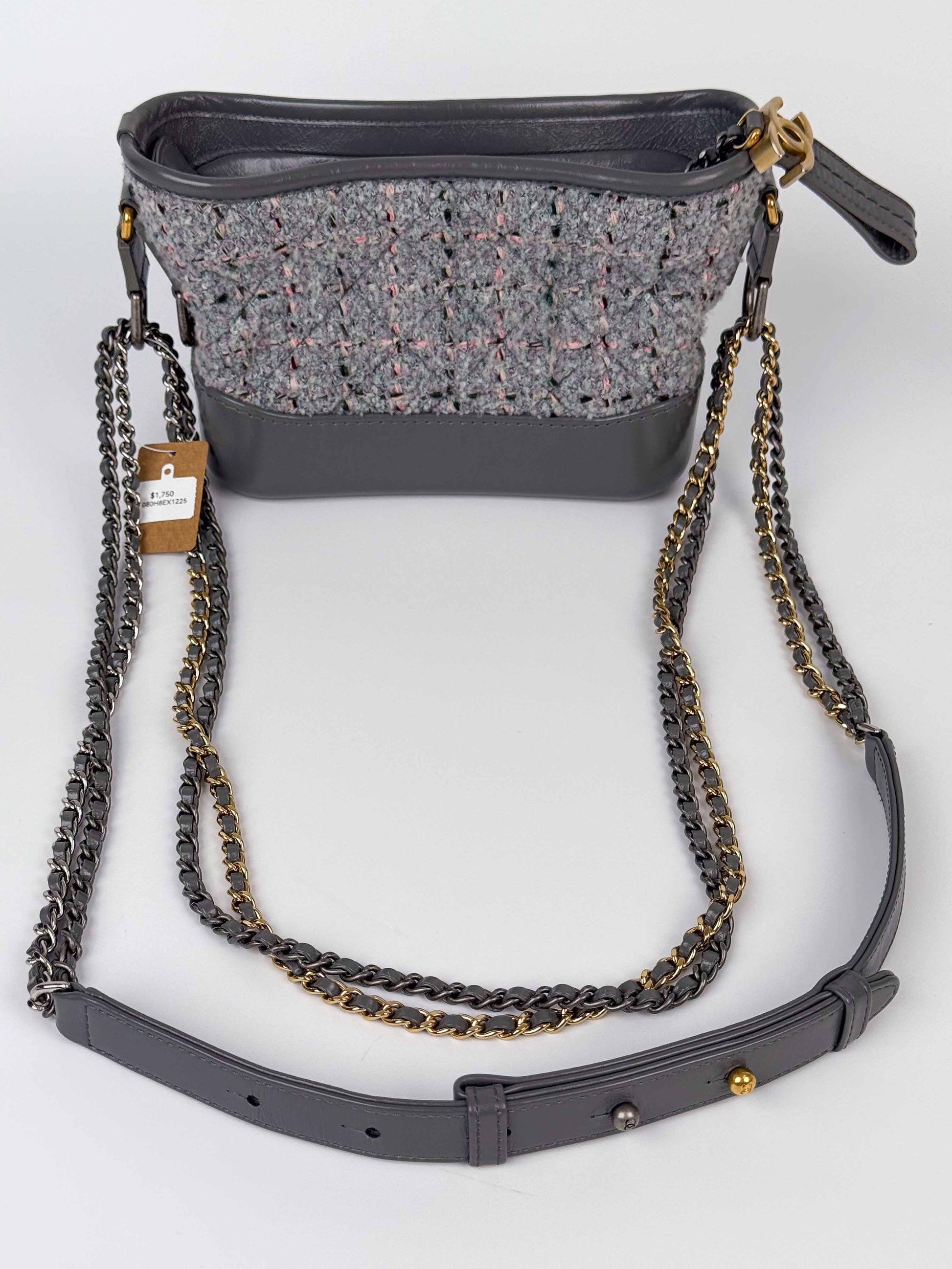 (A91) Chanel Grey Calf Leather/Tweed Small Gabrielle Hobo Bag Multi-Tone Hardware