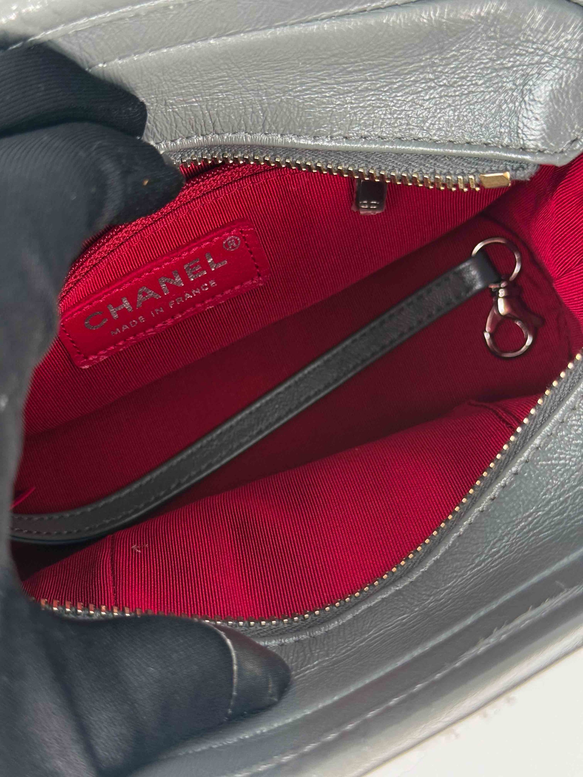 This Chanel Gabrielle Hobo Bag in grey calf leather and tweed offers a unique combination of textures for a chic and modern look. Featuring a mix of ruthenium, silver, and gold-tone hardware, this piece from the 2017–2018 Series 24 collection embodies Chanel’s timeless elegance with a contemporary twist. Compact and versatile, it’s perfect for everyday wear. Comes with Entrupy authentication for guaranteed authenticity.