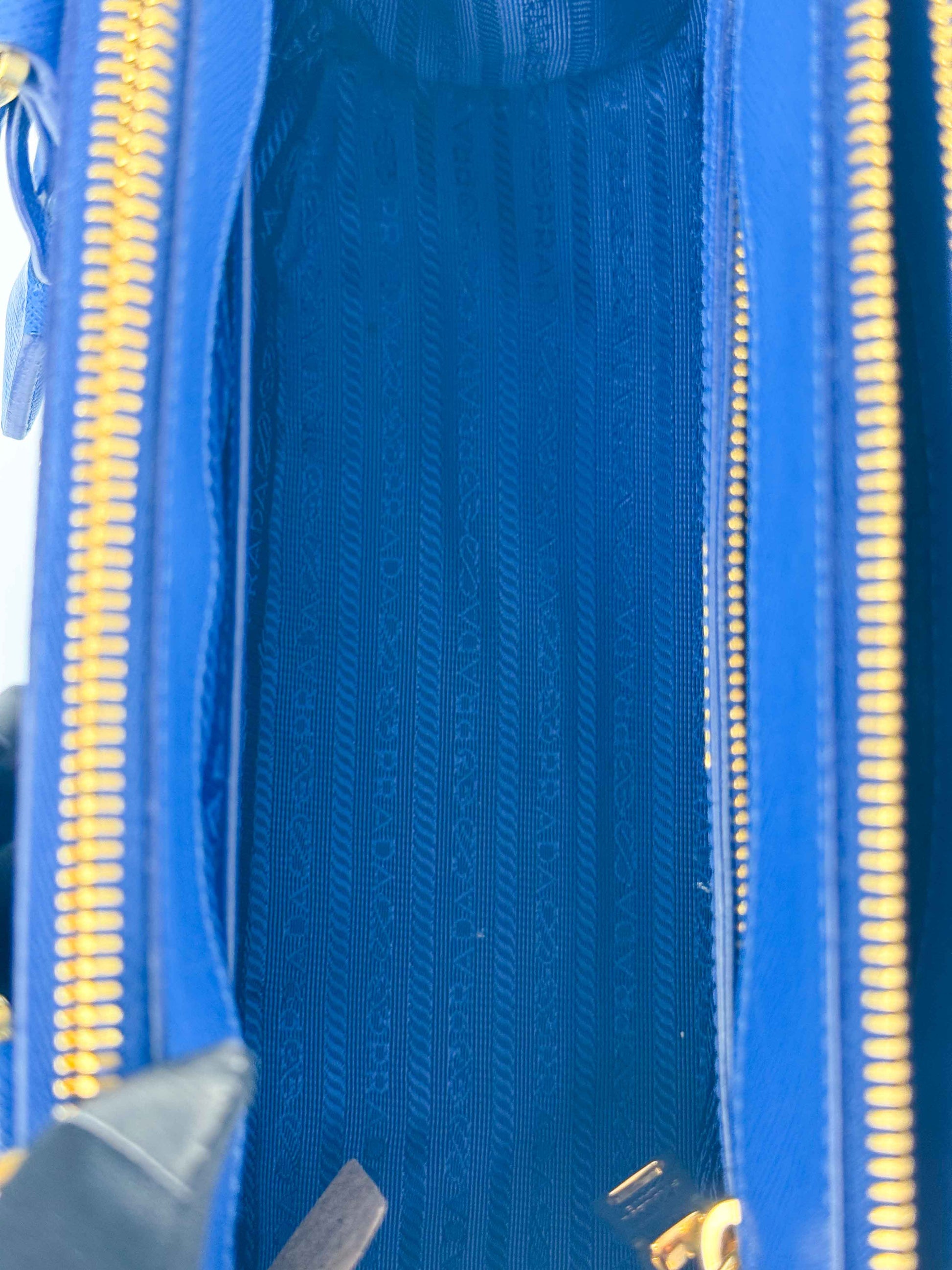 (A92) Prada Blue Galleria Saffiano Leather Bag Gold Hardware