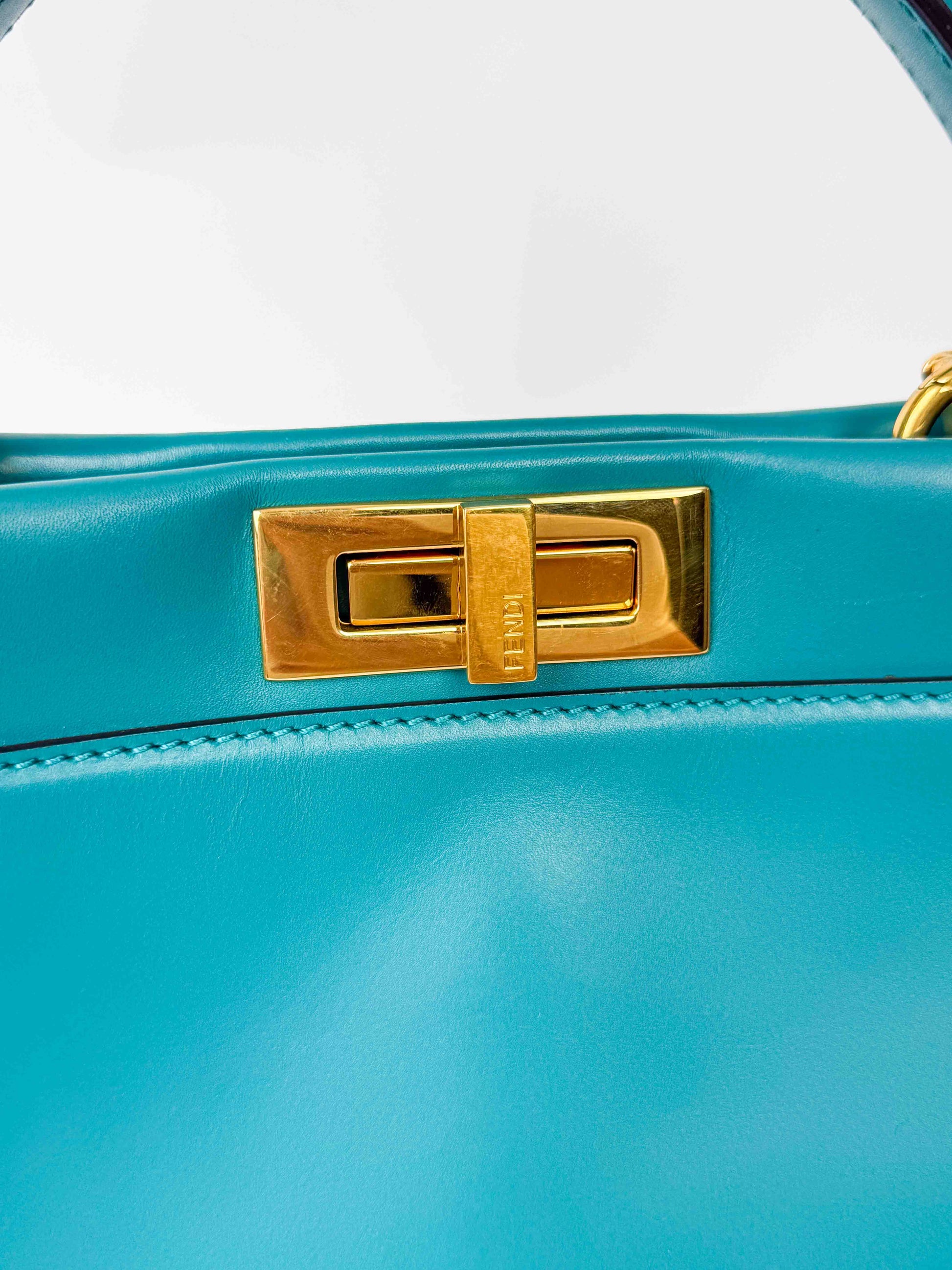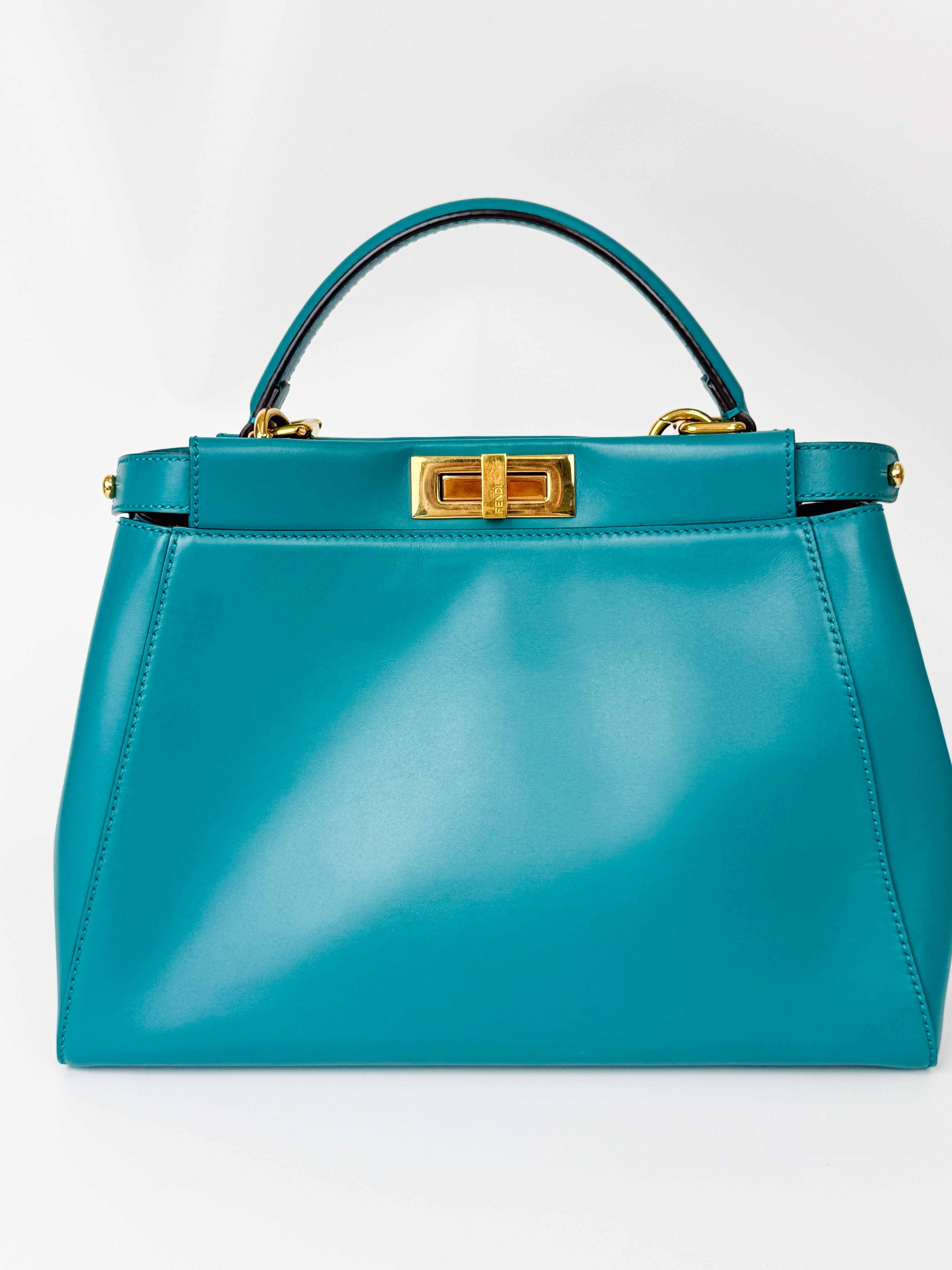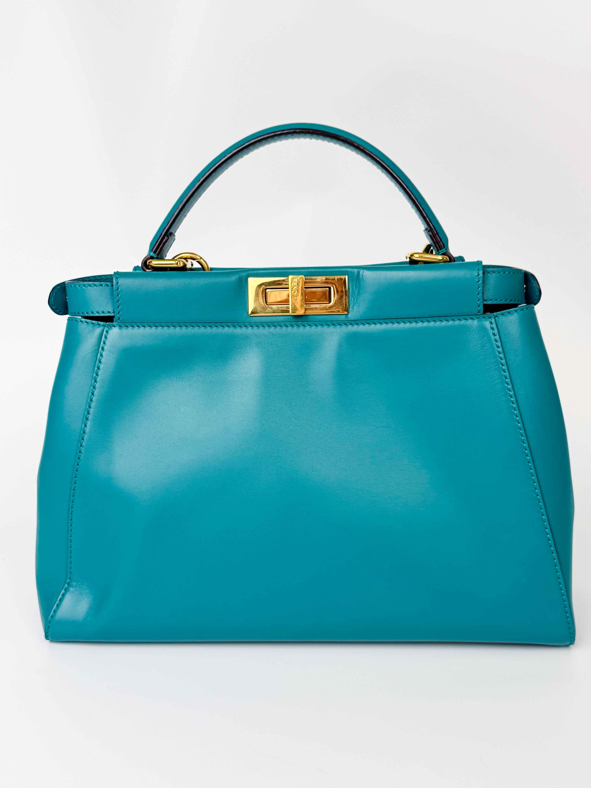 (A97) Fendi Teal Medium Peekaboo Gold Hardware