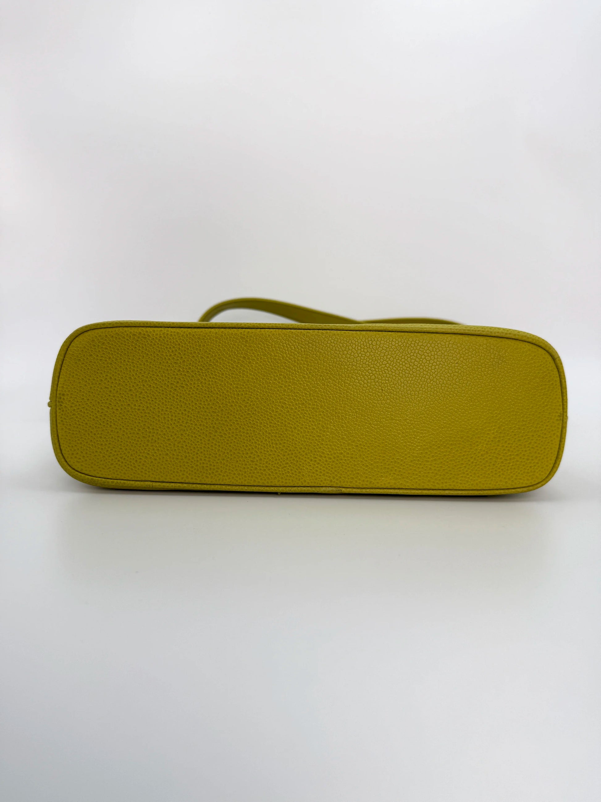 (AJ1) Chanel Vintage Logo Shoulder Bag, Lime Green Caviar, 24K Gold Plated Hardware