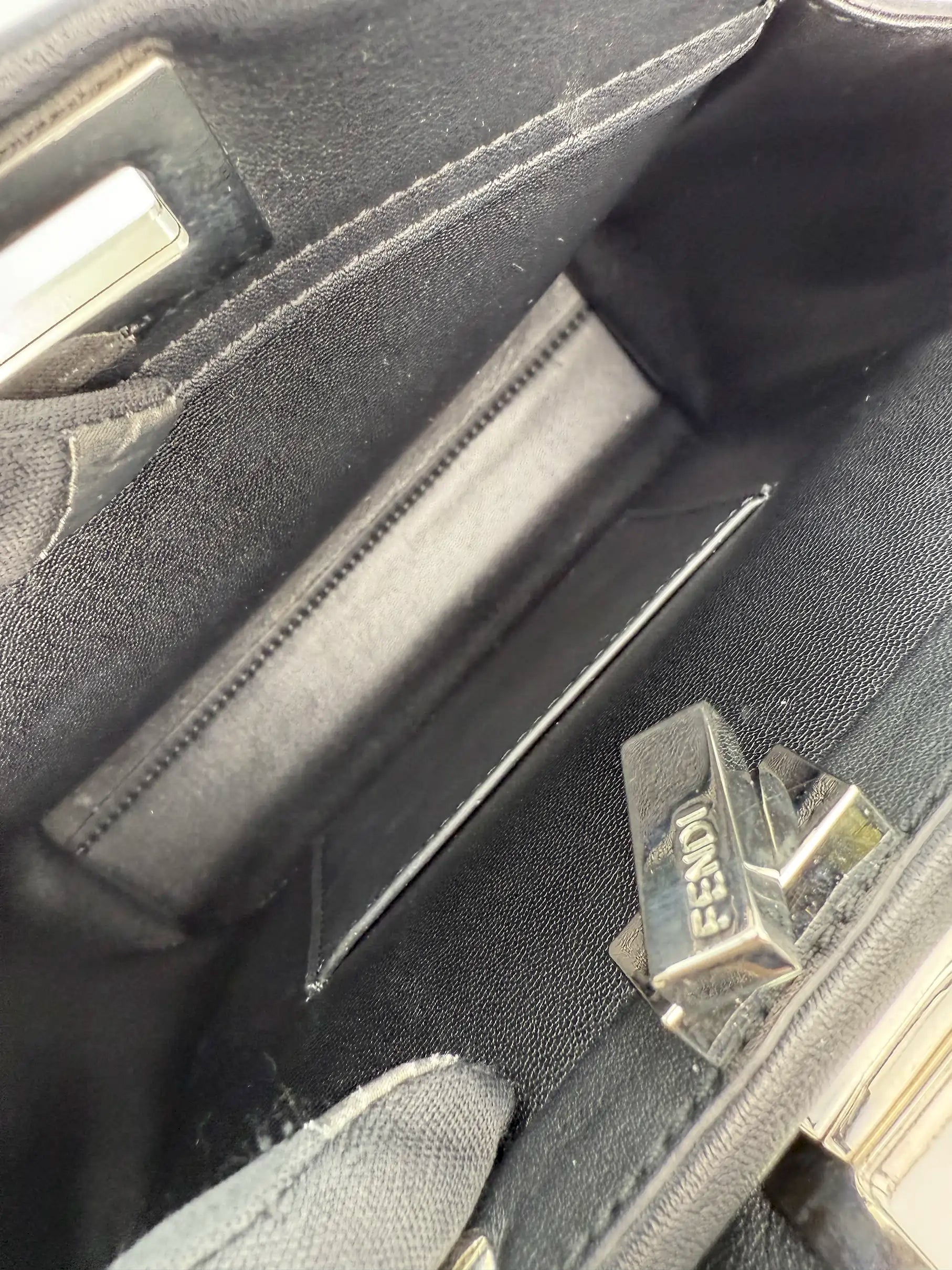 This stunning Fendi Small Peekaboo is crafted from black calf leather and beautifully accented with delicate pearl embellishments. Featuring silver hardware and the iconic Peekaboo silhouette, it exudes timeless sophistication. Perfectly sized for day-to-night use, this bag offers both style and functionality.