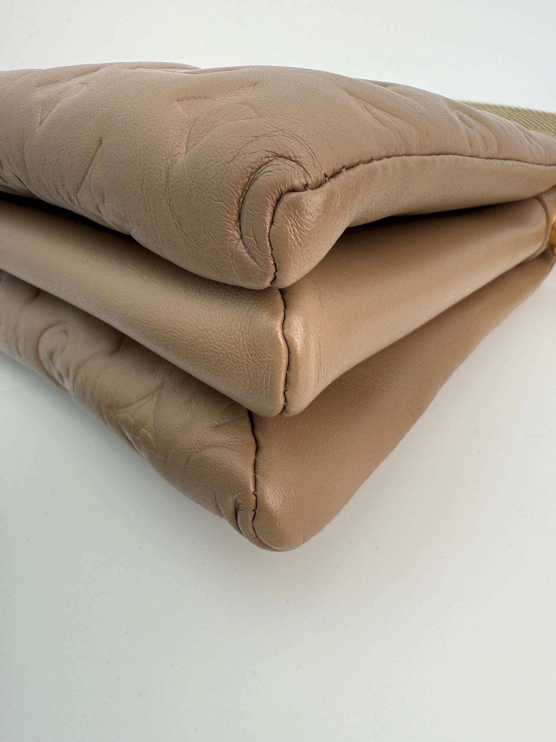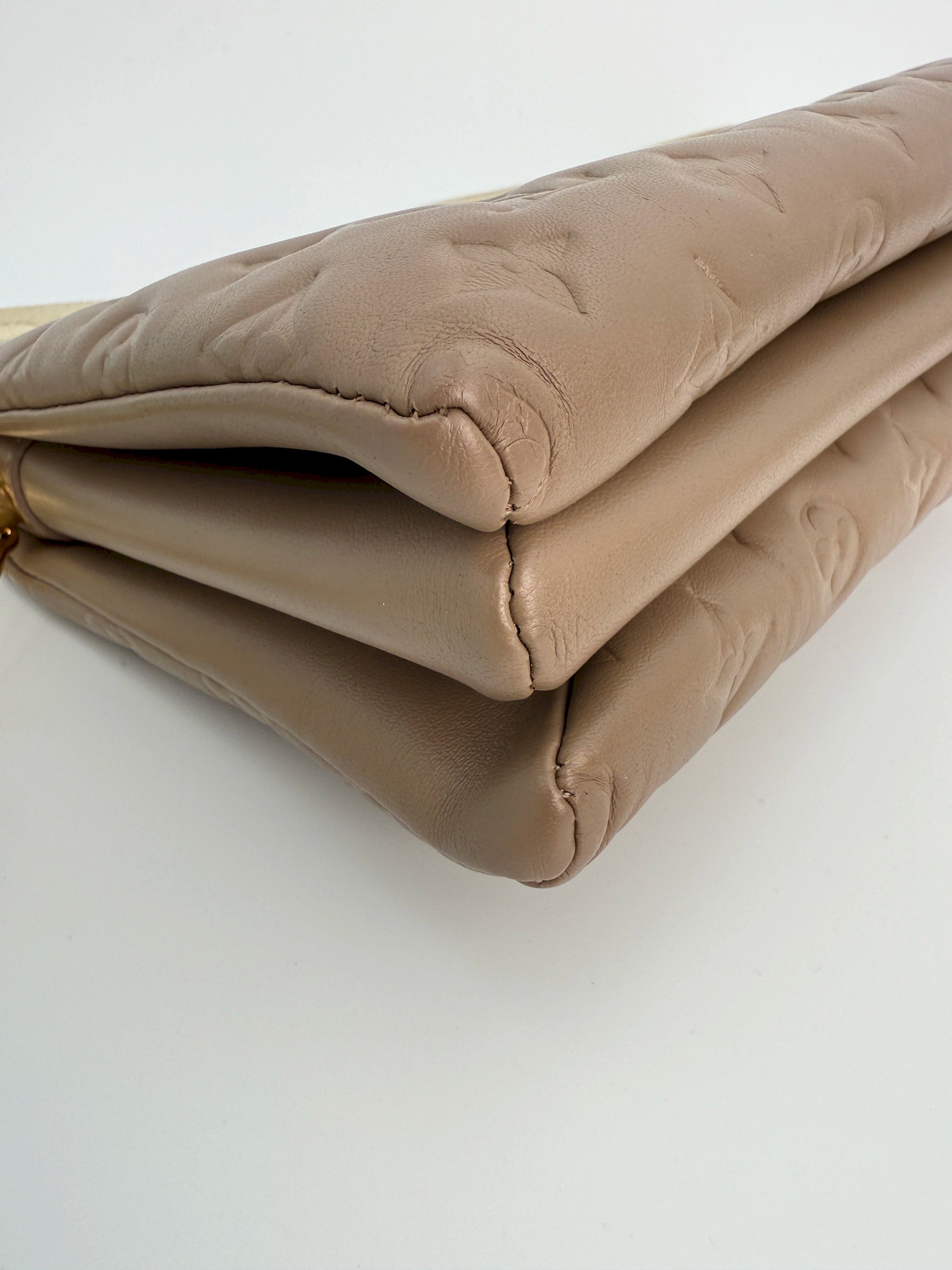 (AJ20) Louis Vuitton Beige Monogram Embossed Coussin PM, Gold Hardware