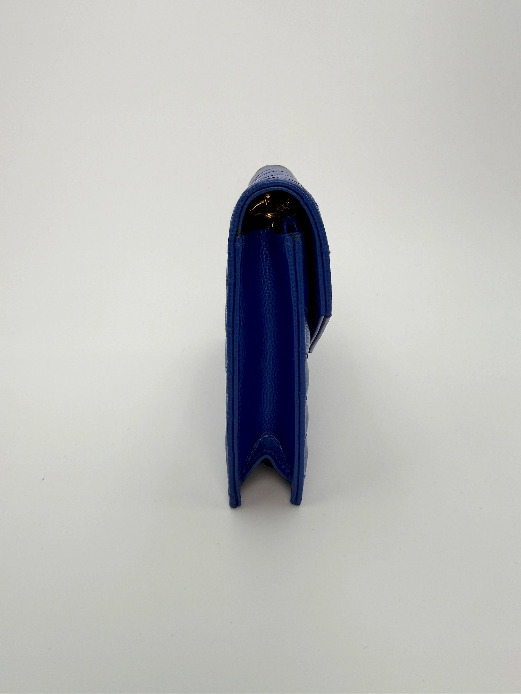 (AJ27) YSL Blue Caviar Cassandre Wallet on Chain, Gold Hardware