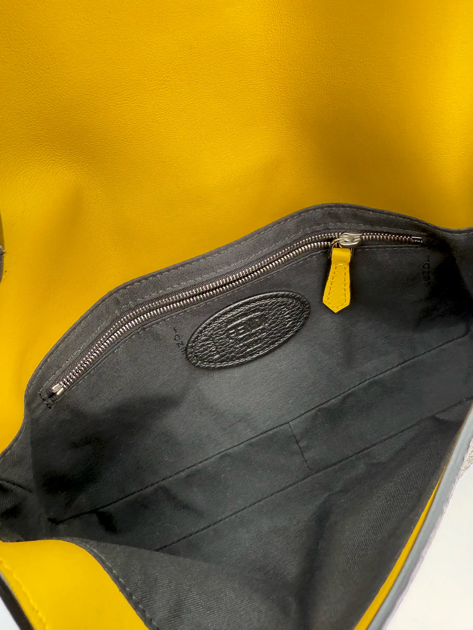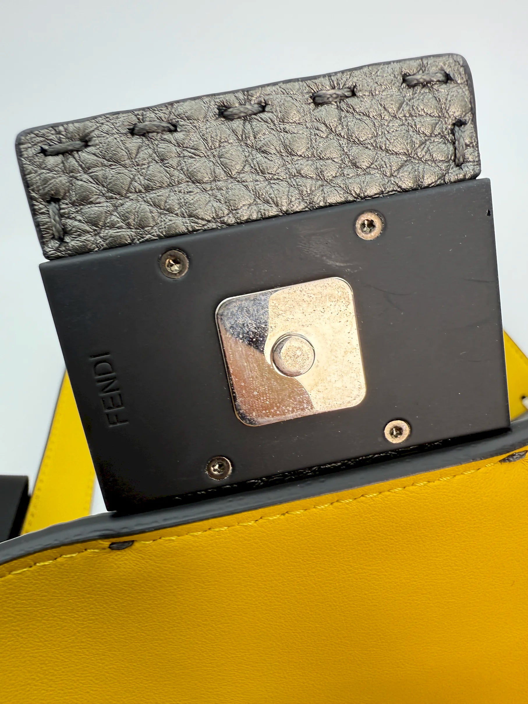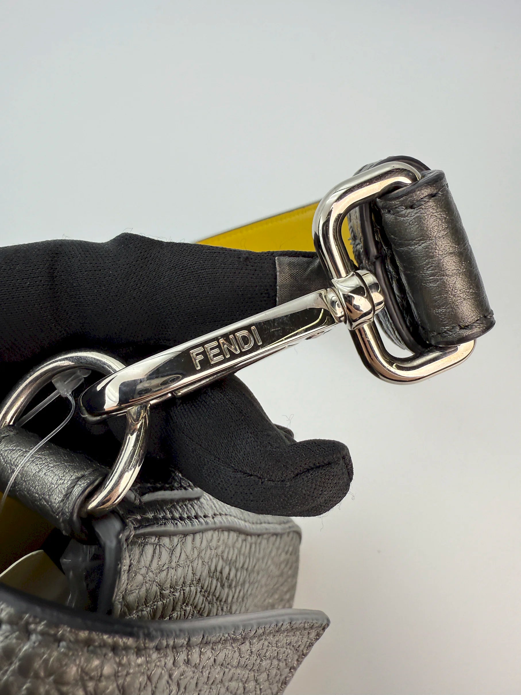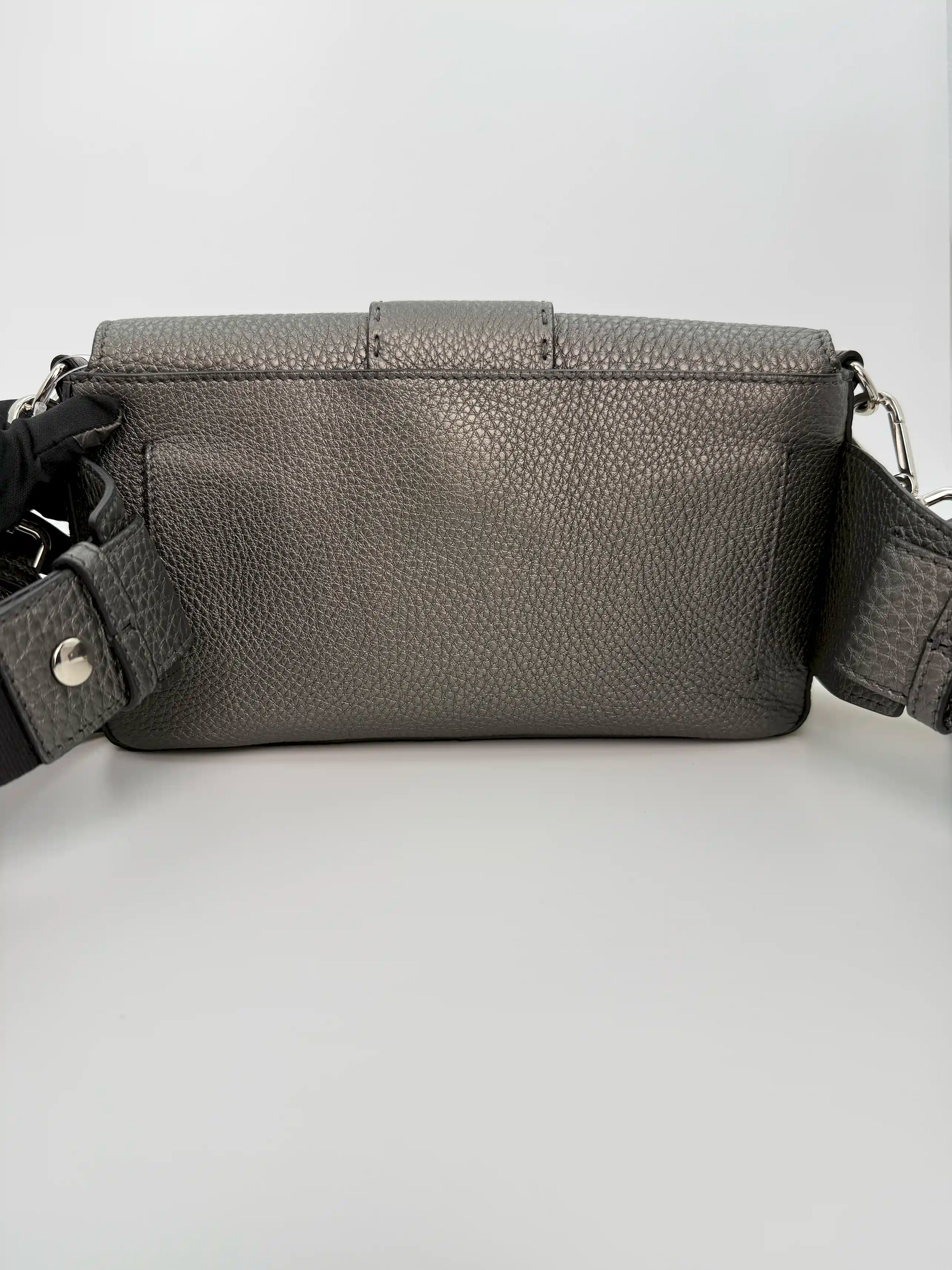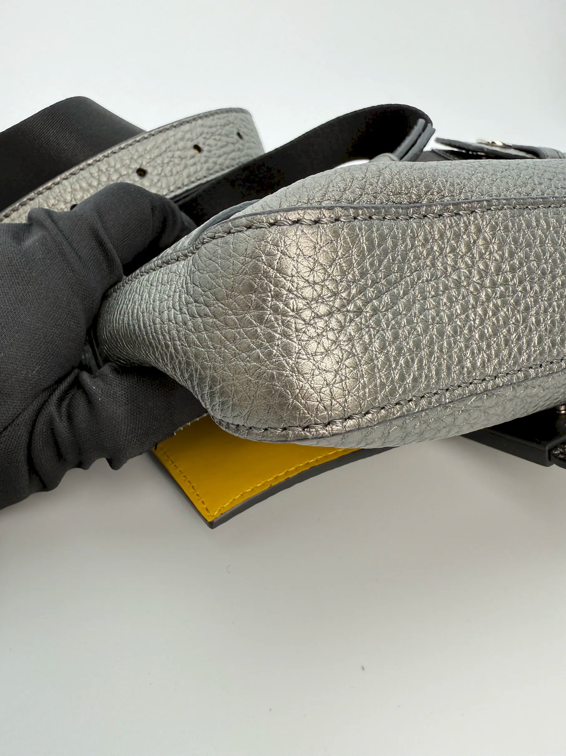 (AJ30) Fendi Grey Calf Leather Baguette Crossbody/Belt Bag, Silver Hardware