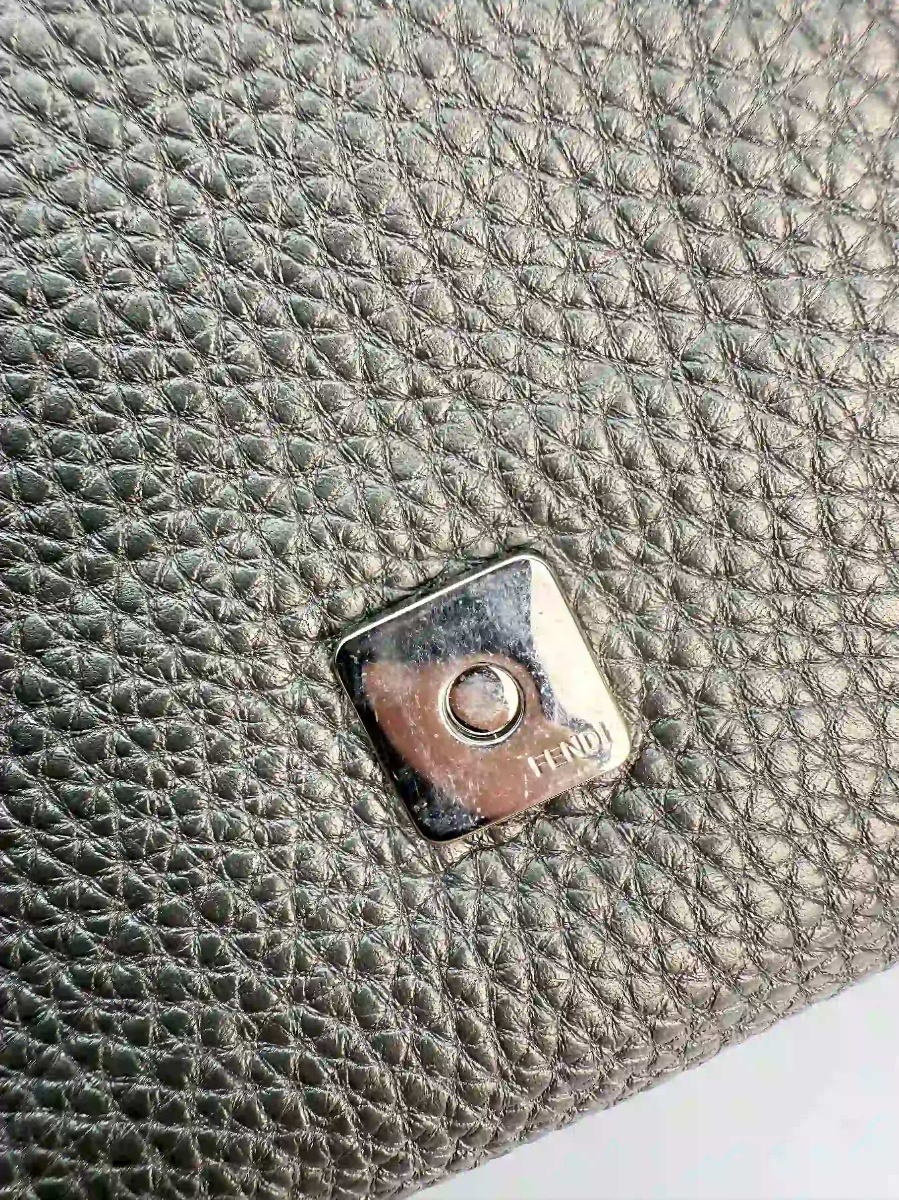 This Fendi Baguette Bag is crafted from smooth grey calf leather, accented with sleek silver hardware. Its versatile design allows it to be worn as a crossbody or belt bag, offering both practicality and modern style. Perfect for both casual and refined occasions, this piece embodies Fendi’s timeless craftsmanship.