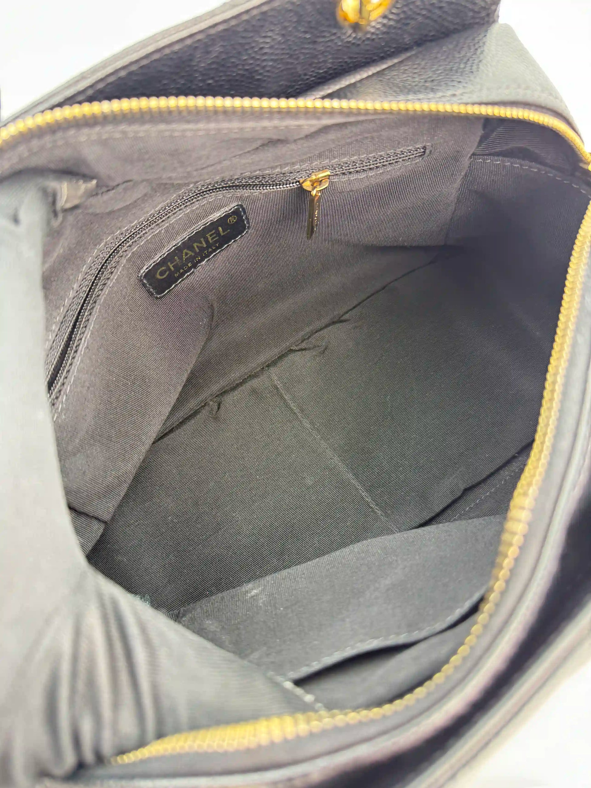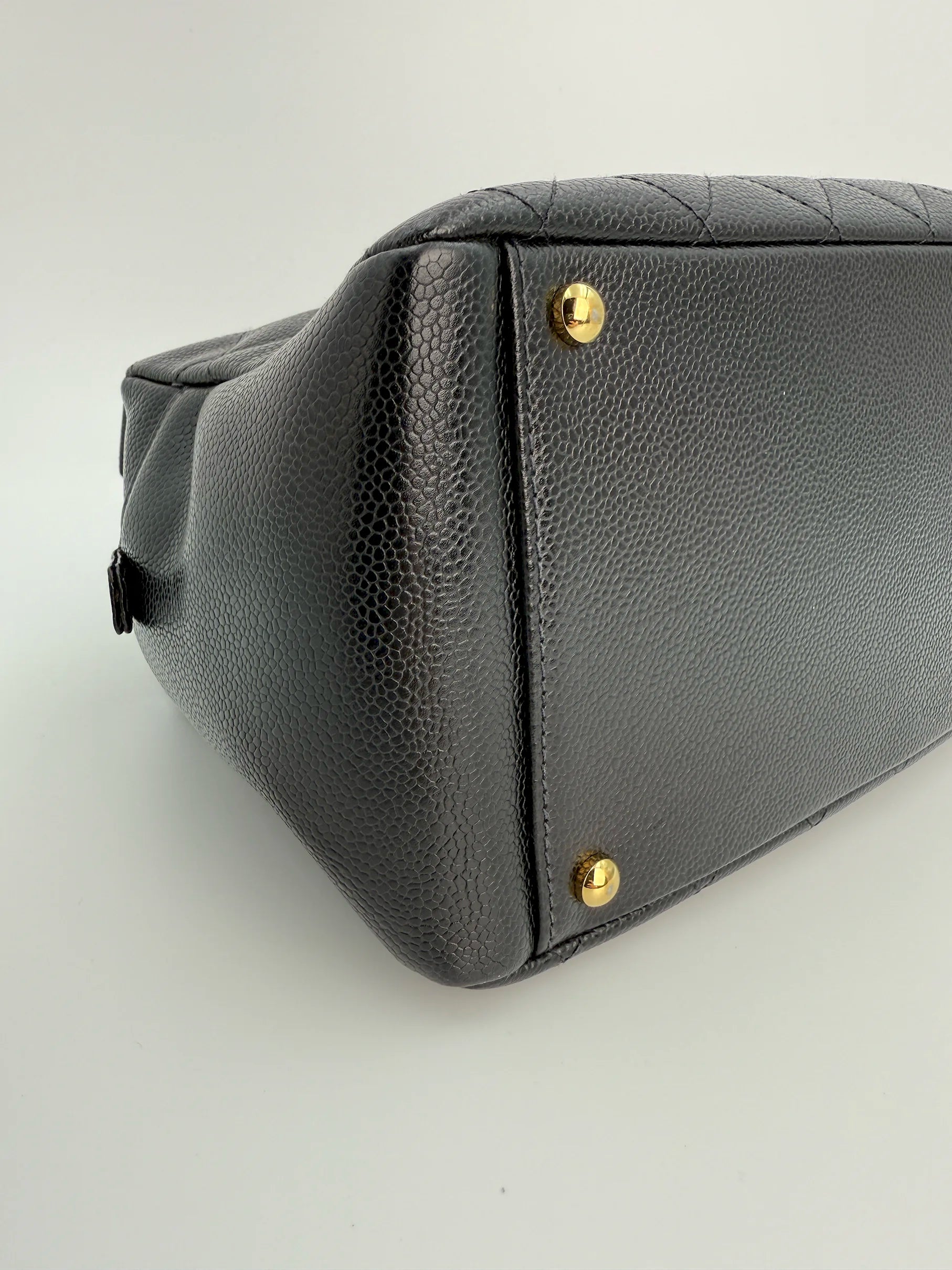 (AJ31) Chanel Black Caviar PTT Tote Bag, Gold Hardware