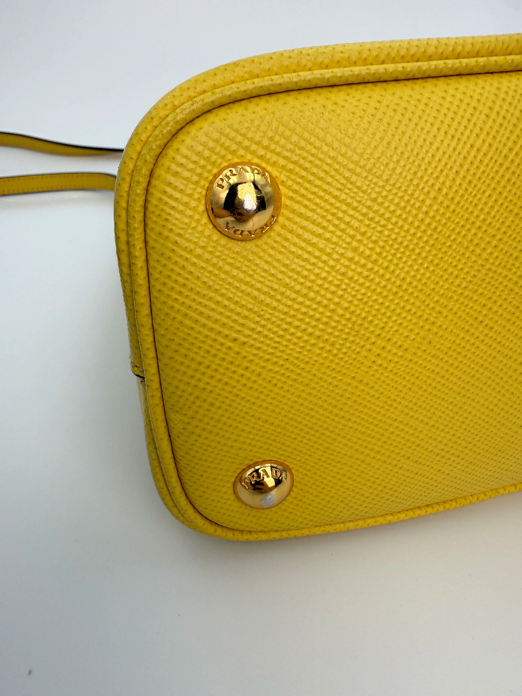 (AJ45) Prada Yellow Saffiano Cuir Calf Leather Small Panier Bucket Bag, Gold Hardware