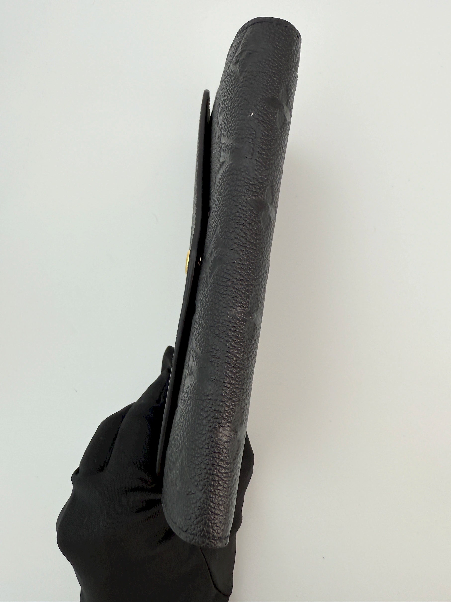 (AJ51) Louis Vuitton Black Empreinte Sarah Wallet, Gold Hardware