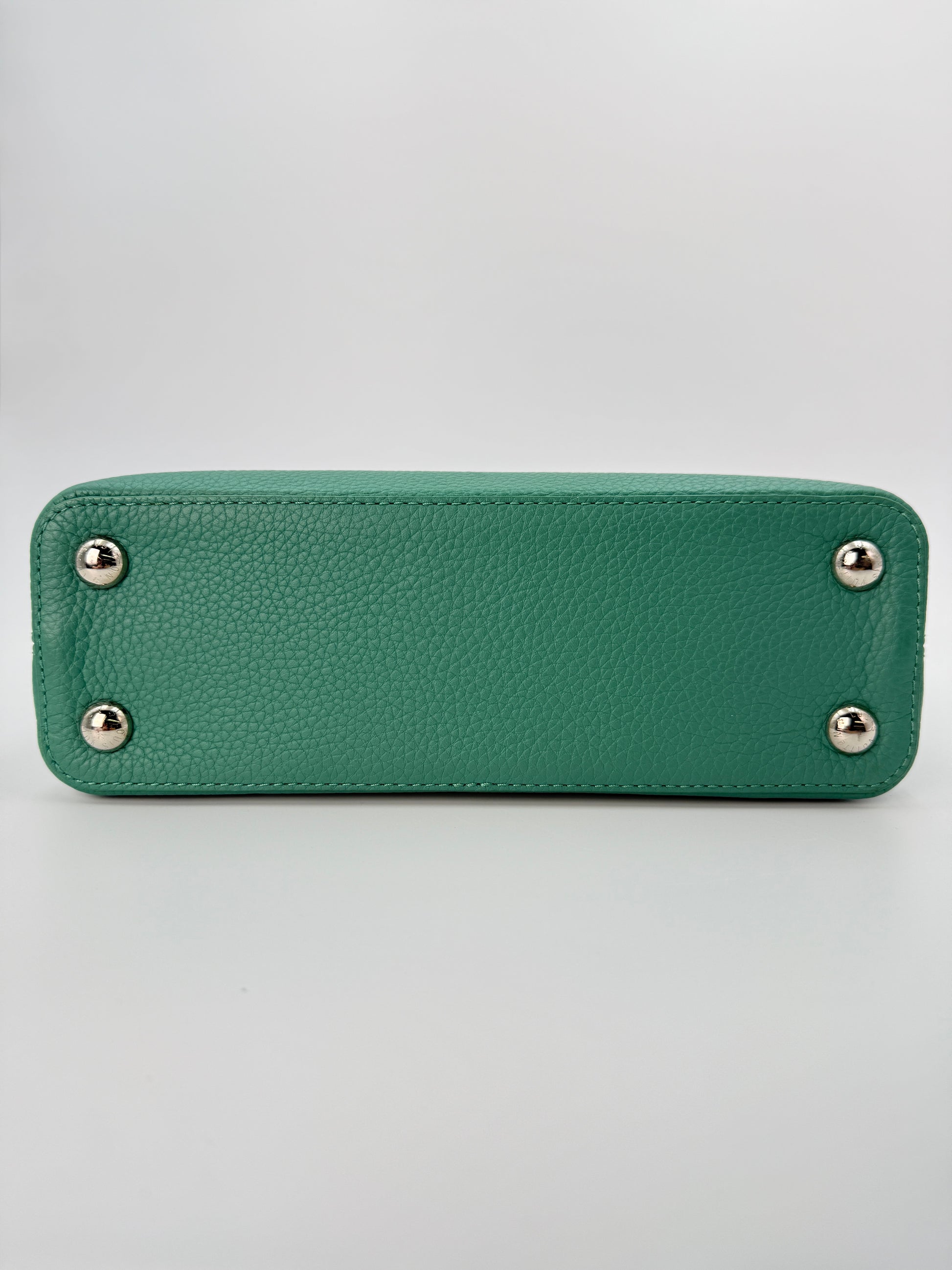 (AJ52) Louis Vuitton Green/Blue Calf Leather Taurillon Medium Capucines, Silver Hardware